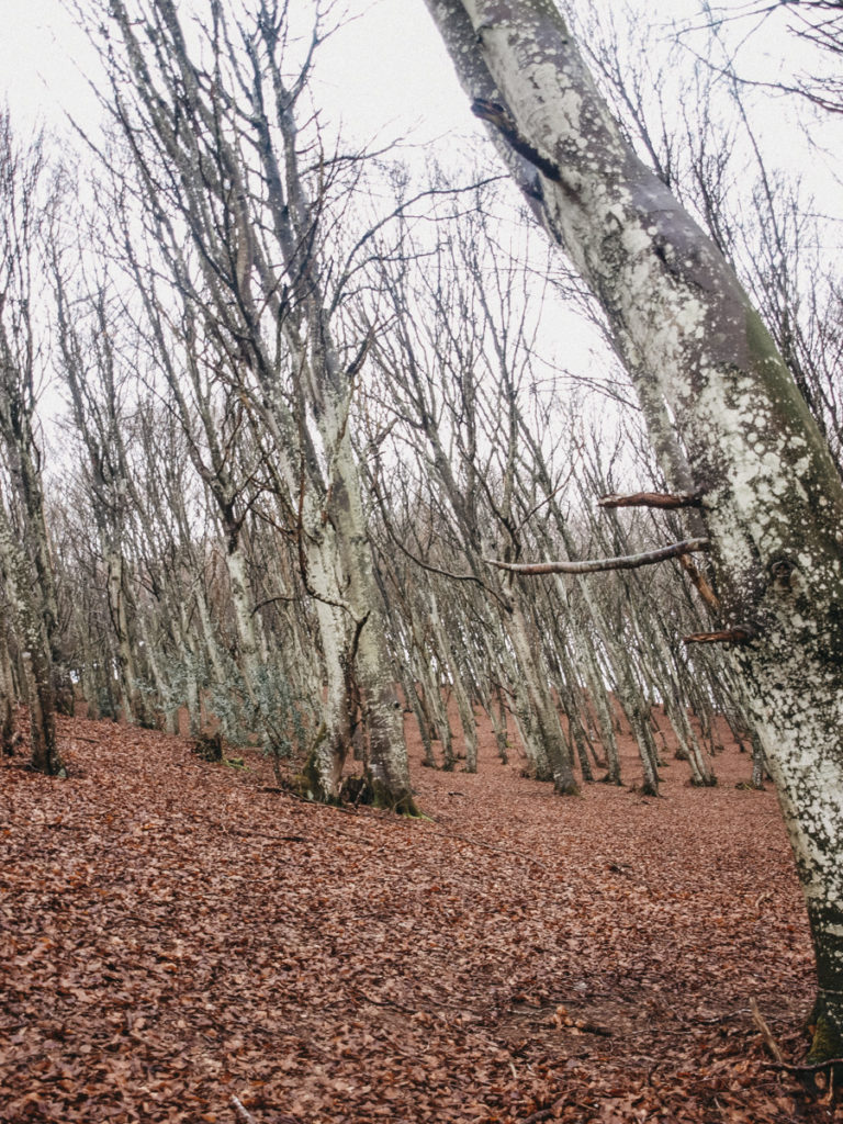 Las brumas, fieles amantes de los hayedos, acarician el bosque con dulzura, aferrándose tercamente a los árboles. Esas brumas le regalan humedad, agua, alimento, vida en definitiva, pero también envuelven el bosque de misterio, de belleza, lo convierten en el lugar idóneo para los viejos cuentos de duendes, hadas, gnomos o leprechaunds, que hacen del hayedo su hogar. Como no podía ser de otra forma, nosotros buscadores de belleza, nos dejamos embaucar por la atracción magnética de esas brumas, caminando pausadamente sobre la alfombra telúrica de la hojarasca.