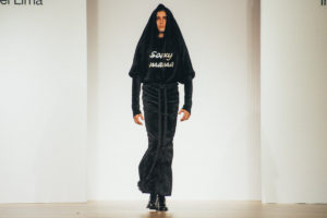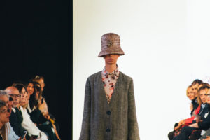 Me sorprendieron agradablemente los diseños de Saioa Matxain. Tejidos de lino y algodón en azul cielo, blanco y tonos malva y rosa. Original su interpretación del kimono y las faldas pantalón para favorecer la libertad de movimientos. Julen Linde presentó 6 diseños todos ellos masculinos. Formas rígidas, estructuradas y tono apagados en una colección inspirada por una sociedad discriminadora. El cierre fue para Inge Zubeldia y su colección nupcial con novias que bien podían haber salido del cuento La Reina de las Nieves.