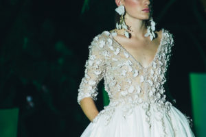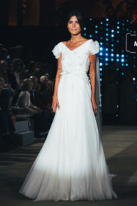 No podían faltar los vestidos de novia, marca de la casa, de gran belleza y elegancia. También hay que destacar los diseños que cerraron en su día su primer desfile en la pasarela Cibeles Novias, la desaparecida Gaudí, o su primera vez en la pasarela de Nueva York. No podía faltar el vestido con el que cerró la noche; un clásico de novia con escote barco, manga francesa y gran cola, inspirado, como no podía ser de otra manera, en Balenciaga.