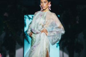 La donostiarra Isabel Zapardiez celebraba su 15 aniversario presentando “My Secret Garden” donde pudimos ver diseños inéditos junto con los más representativos que han marcado la carrera de la diseñadora. Con una puesta en escena en tonos verdes que evocaba un gran jardín, los invitados pudimos disfrutar viendo los diseños ultrafemeninos con predominio del color verde y los motivos florales incluyendo maxi pendientes y zapatos decorados para dar armonía al conjunto. Looks favorecedores y sexies a más no poder donde lleva al universo Couture los clásicos del vestuario femenino como los monos, vestido o pantalones.