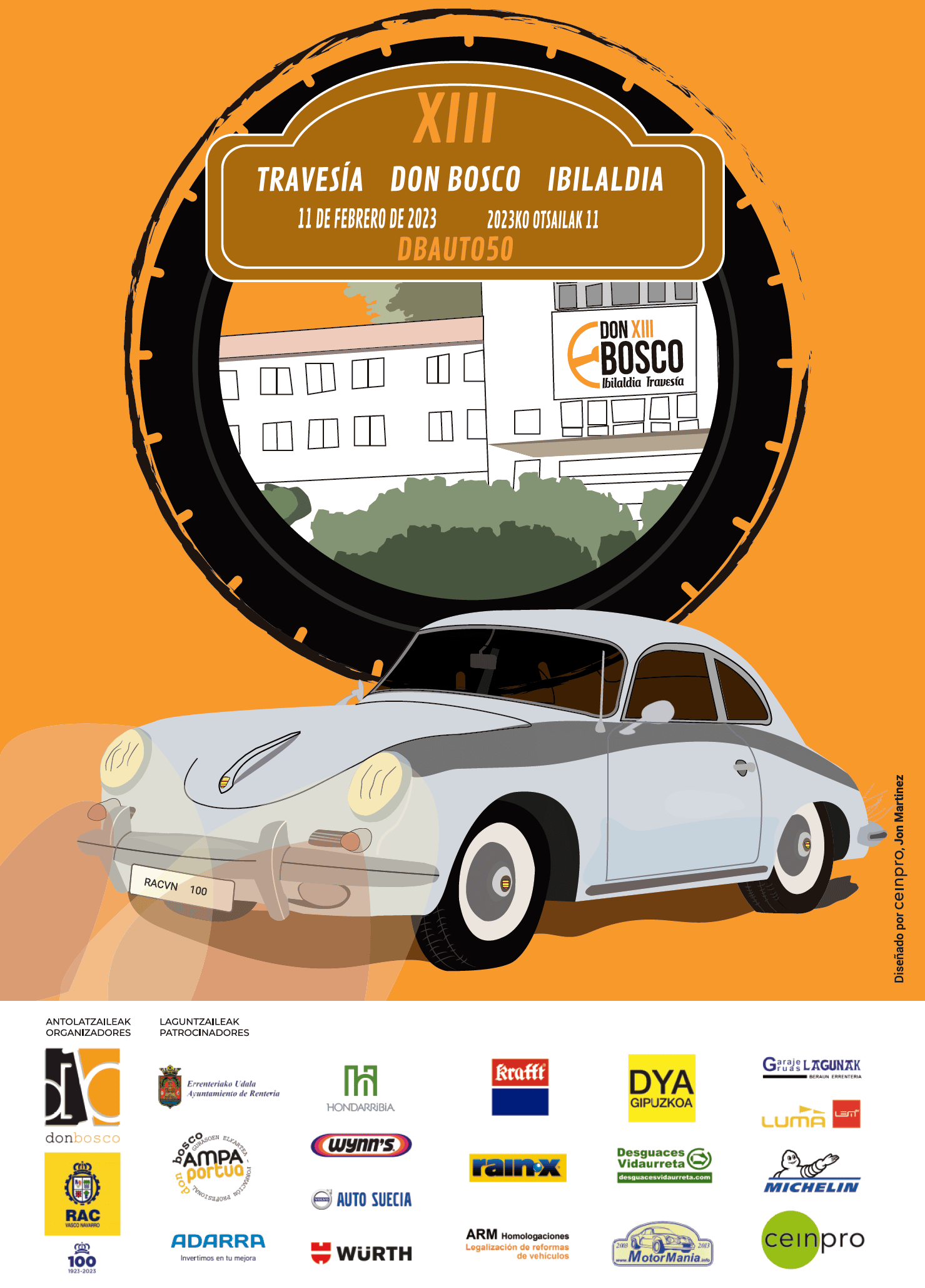 departamento de Automoción de Don Bosco, el Centenario del Real Automóvil Club Vasco Navarro (RACVN) y diez años de colaboración con Ceinpro para la elaboración del cartel e imagen gráfica de cada edición.