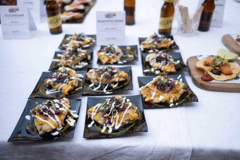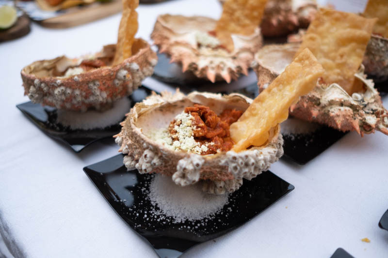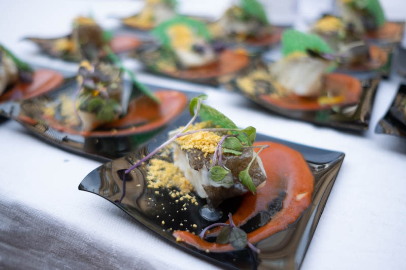 Fusión de bacalao con un toque mejicano mediante la tortilla de maíz tostada al fuego, achiote para marinar el pescado, ensalada de maíces y mayonesa de hongo de maíz.