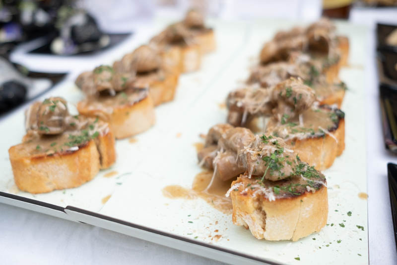 Brocheta de champiñón en doble salsa