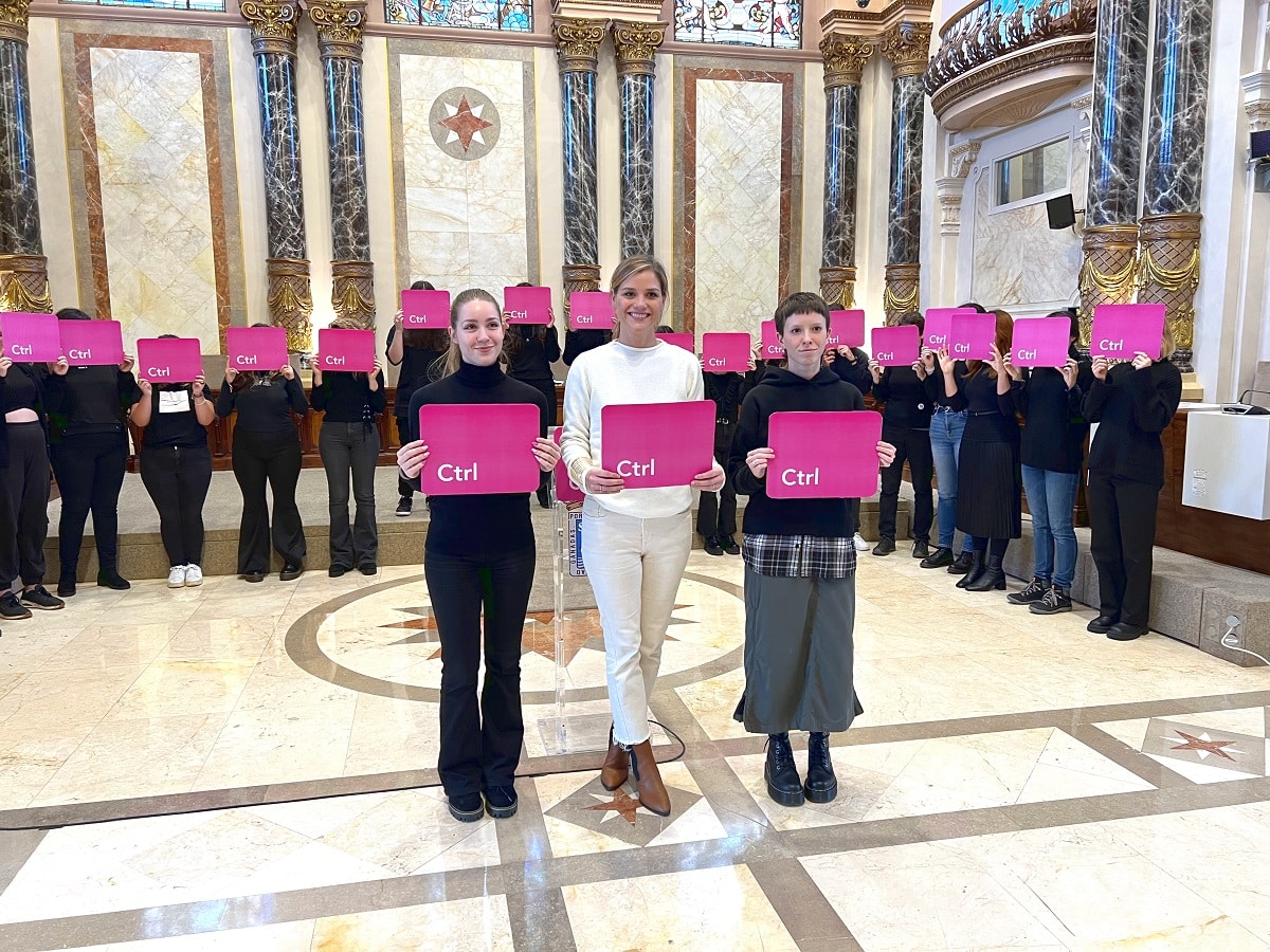 Las alumnas del Instituto Usandizaga Aleksa Todorova y Sandra Fernández explicaron el objetivo de la campaña #controlsexista “Somos jóvenes que queremos reivindicar una sociedad libre y abierta en la que poder vivir sin que nadie nos controle. Nosotras, estudiantes de Diseño Gráfico, venimos a denunciar el control al que estamos sometidas cada día por parte de una sociedad que en su base tiene una estructura y una forma de actuar sexista y machista».