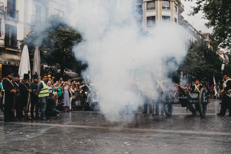 El acercamiento de las tropas aliadas, el posicionamiento de las francesas, el asalto a la Bretxa y la toma a la ciudad, así como la ofrenda floral, han protagonizado la tarde que ha culminado con el asalto al castillo y la quema en la plaza Zuloaga.