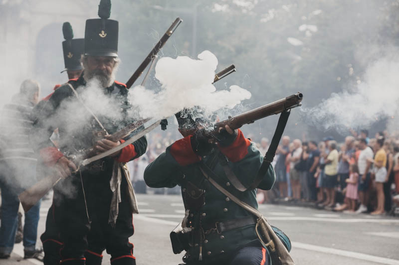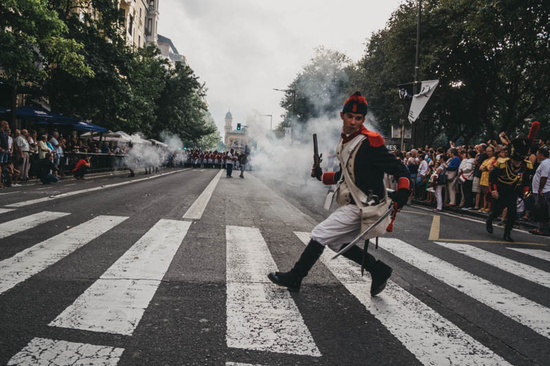 Son 205 años desde la tragedia que supuso la quema completa de Donostia con la excepción de la posteriormente denominada calle 31 de Agosto, que ha vuelto a ser el epicentro de esta conmemoración solemne que incluye la recreación de las batallas entre franceses, ingleses y portugueses.
