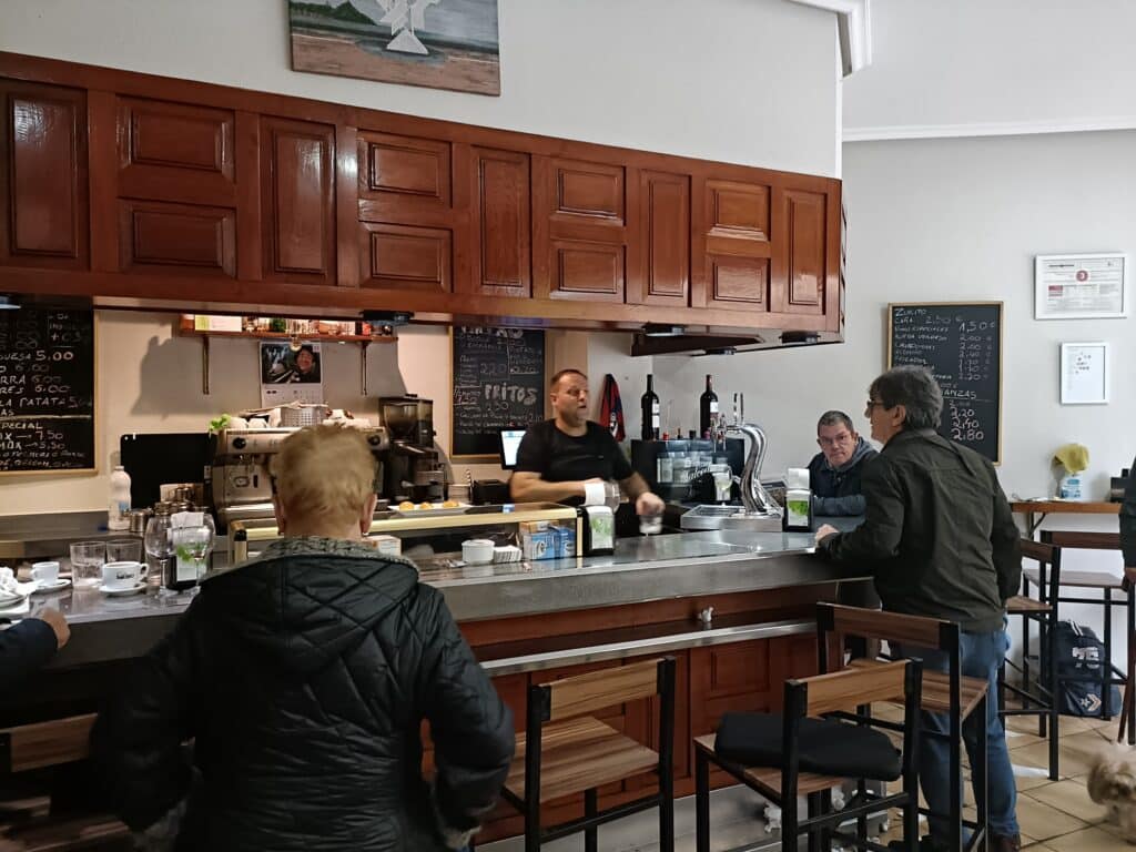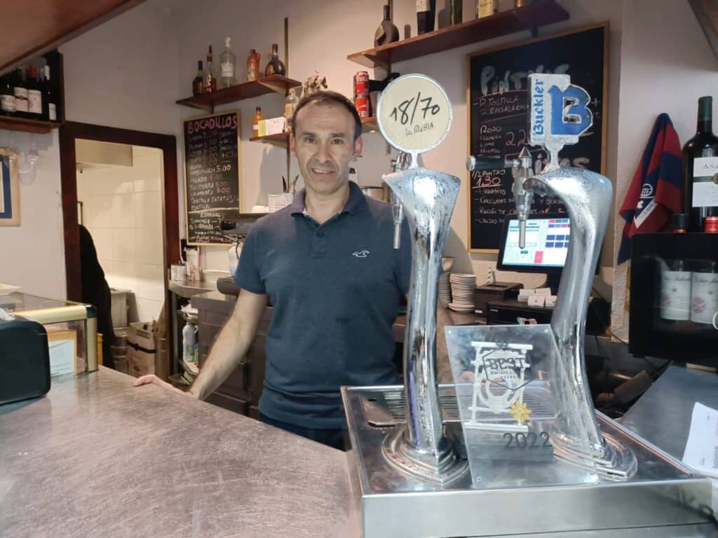 “¡Marchando una de patatas fritas de premio!”, dice Mikel. Saluda con ironía a un grupito de jubilados (“¡pero si viene la juventud!”) y justo después le entrega un ejemplar de El Mundo Deportivo a un cliente al que le ha servido un café con leche, mientras, casi a la vez, coloca dos vasos debajo del grifo del cañero. Todo en un abrir y cerrar de ojos. A las 15:20 horas de un jueves de mediados de noviembre dos señores piden el plato estrella de la casa: