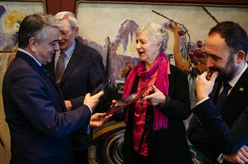 Al homenaje han asistido además del diputado general Markel Olano y el diputado de Cultura, Denis Itxaso, el ministro de Cultura Iñigo Méndez de Vigo, la presidenta del Parlamento Barkartxo Tejeria, el alcalde de San Sebastián Eneko Goia, el consejero de Cultura Bingen Zupiria, y la presidenta de las Juntas de Gipuzkoa, Eider Mendoza, entre otras autoridades.