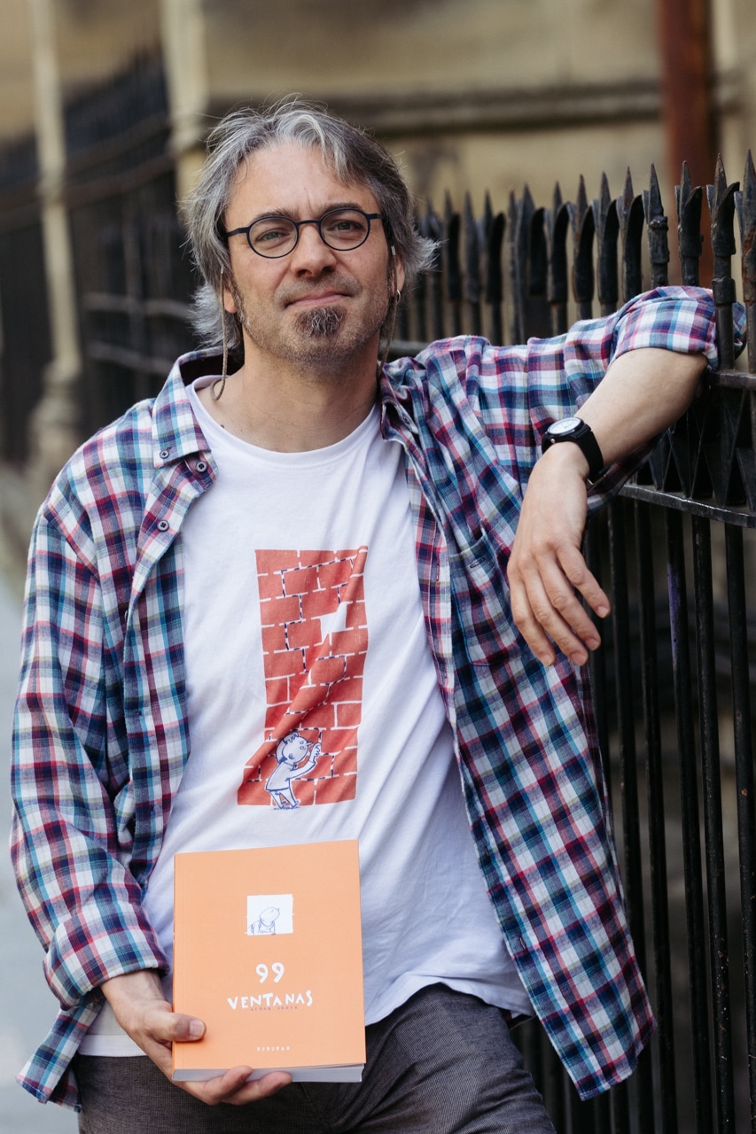 El resultado ha quedado recogido en un libro de humor gráfico, «99 ventanas», que ha editado Pepitas de Calabaza y que su autor ha presentado este miércoles en San Sebastián y en Irun, su ciudad natal, donde este pasado viernes se inauguró en el centro cultural Amaia una exposición de las planchas originales con las que realizó las estampaciones que se podrá visitar hasta el 28 de mayo.