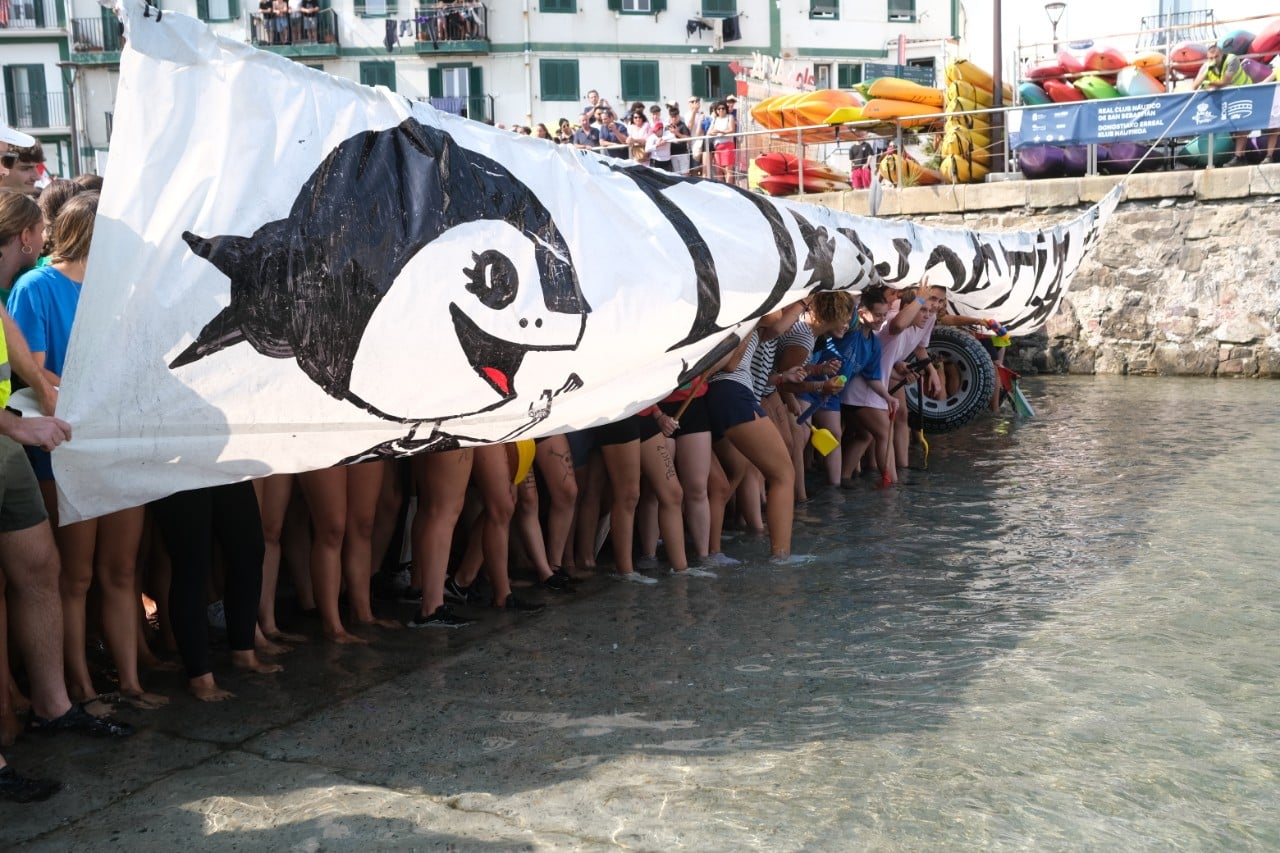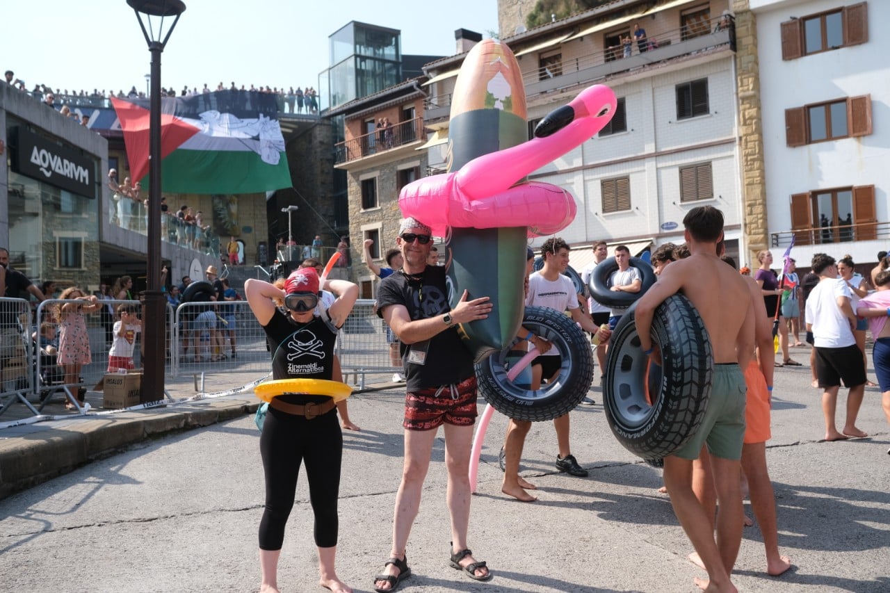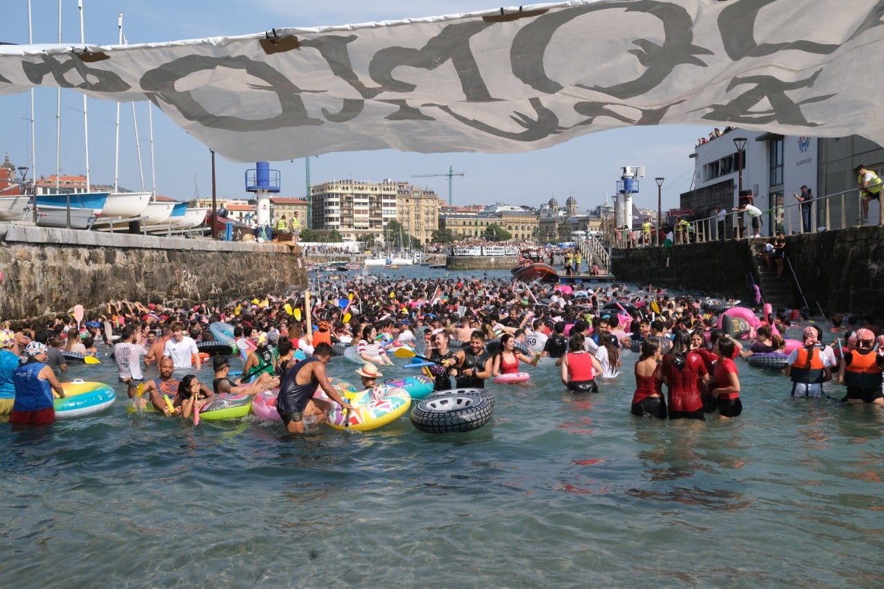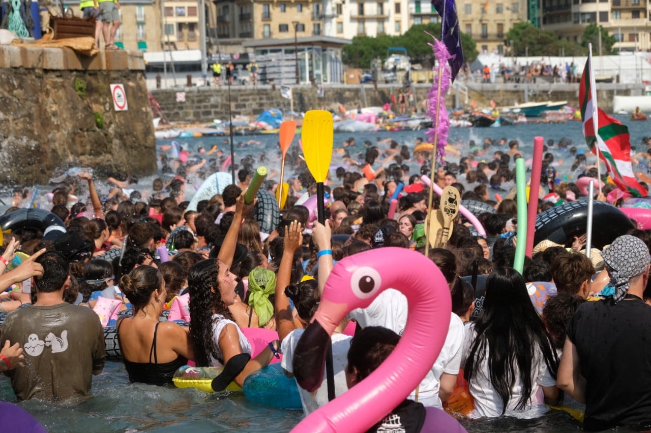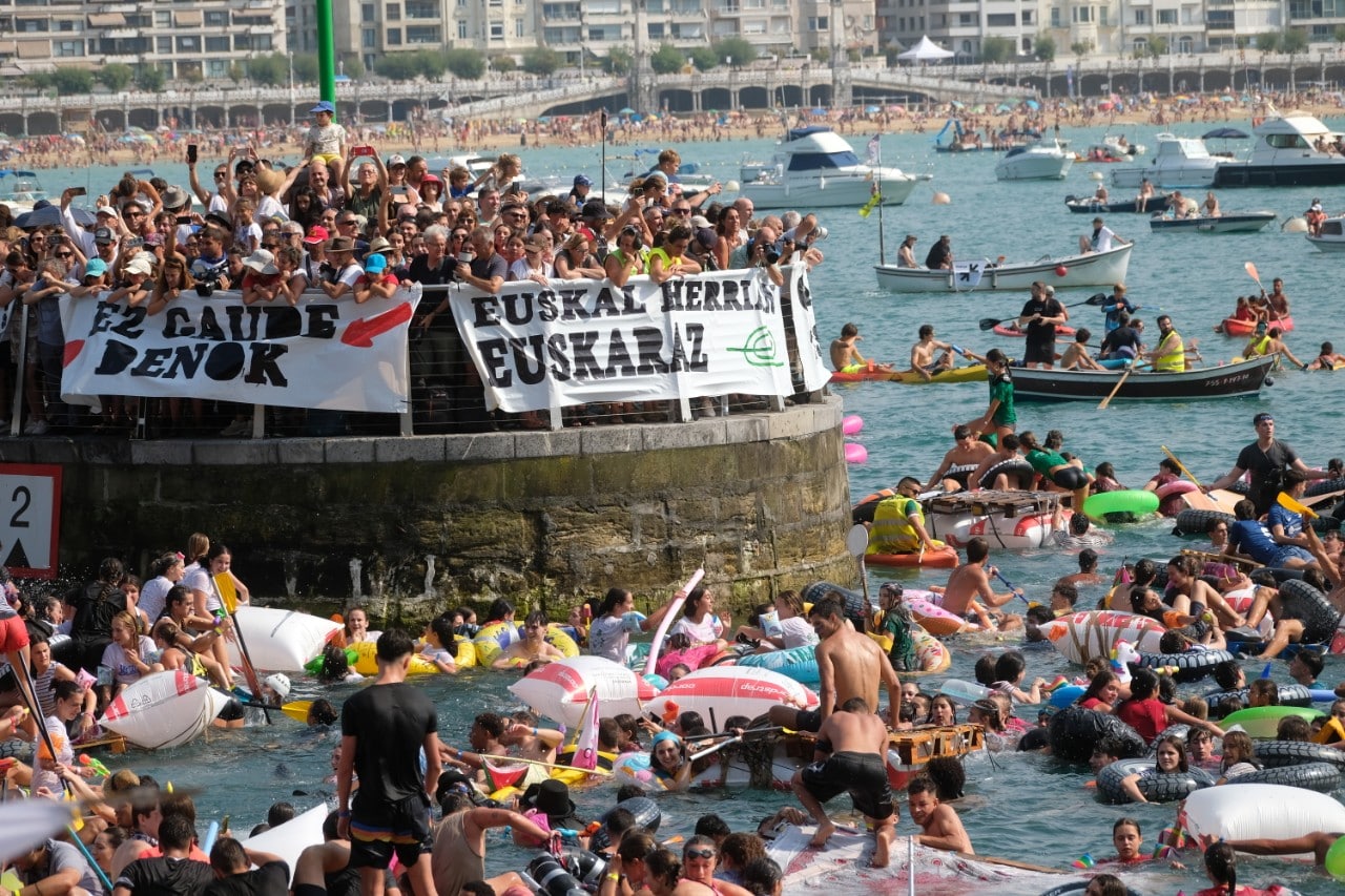 A las 17.00 horas los participantes han partido desde el Puerto rumbo a la bahía de La Concha, componiendo la estampa habitual de esta jornada: embarcaciones de todo tipo y creatividad, algunas con más pericia que otras, y un tono festivo constante. El buen humor no ha faltado, tampoco entre quienes han tenido que abandonar antes de llegar al destino.