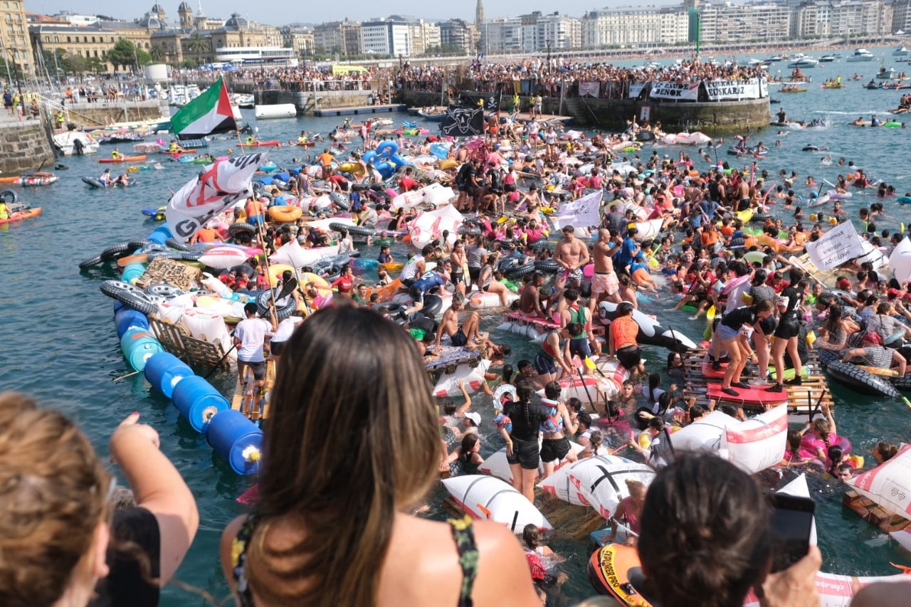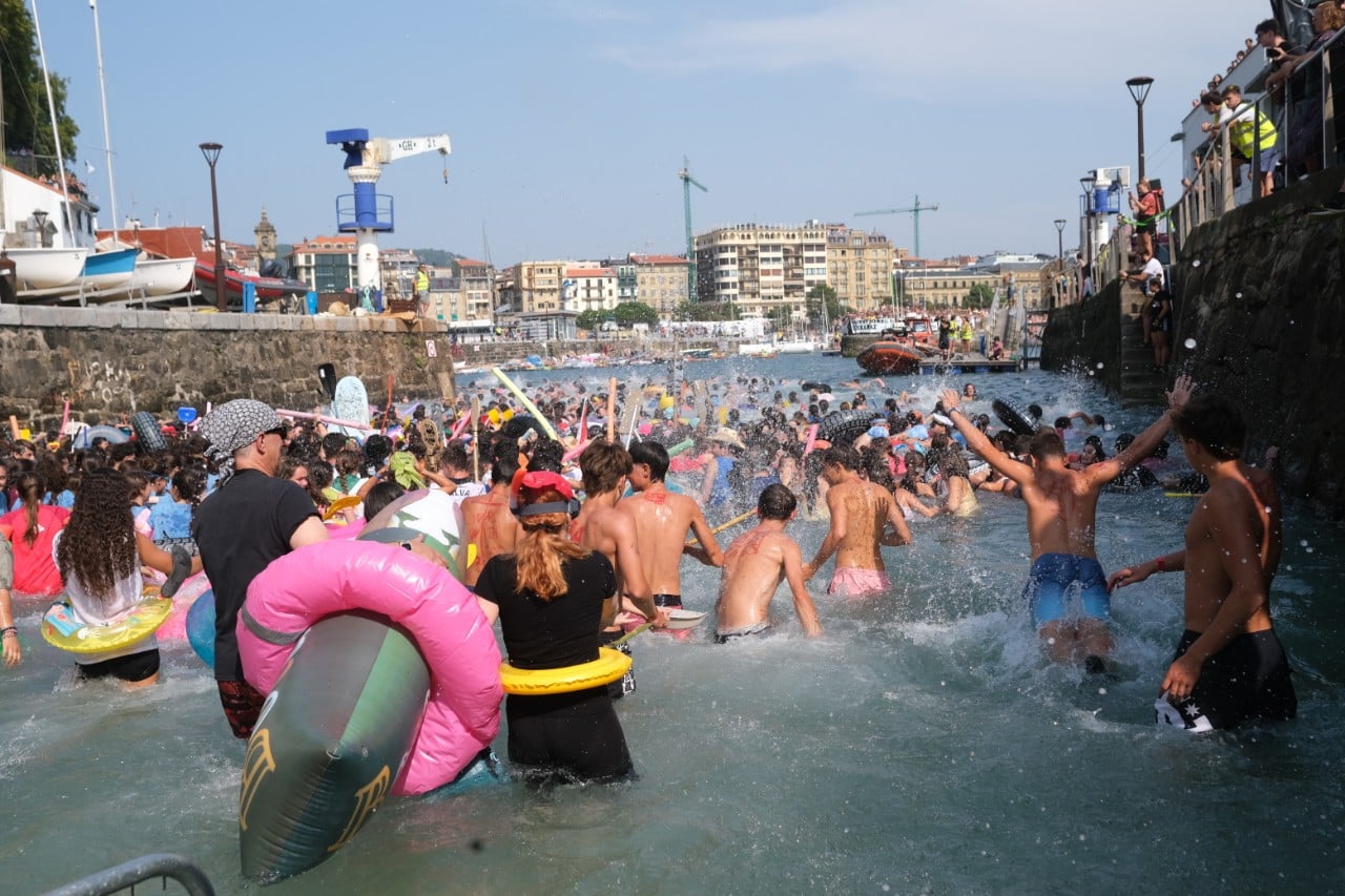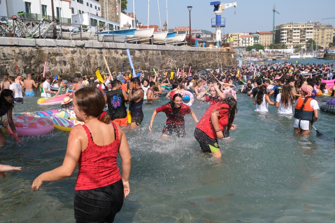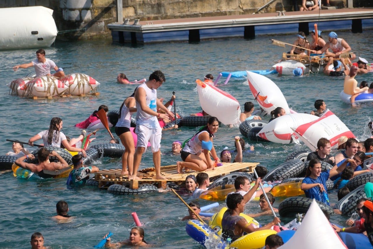 A las 17.00 horas los participantes han partido desde el Puerto rumbo a la bahía de La Concha, componiendo la estampa habitual de esta jornada: embarcaciones de todo tipo y creatividad, algunas con más pericia que otras, y un tono festivo constante. El buen humor no ha faltado, tampoco entre quienes han tenido que abandonar antes de llegar al destino.
