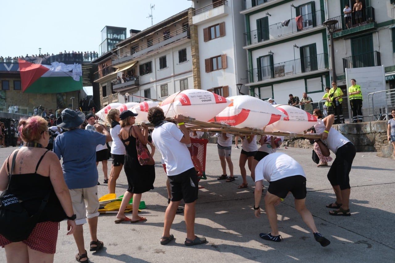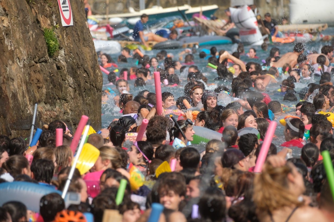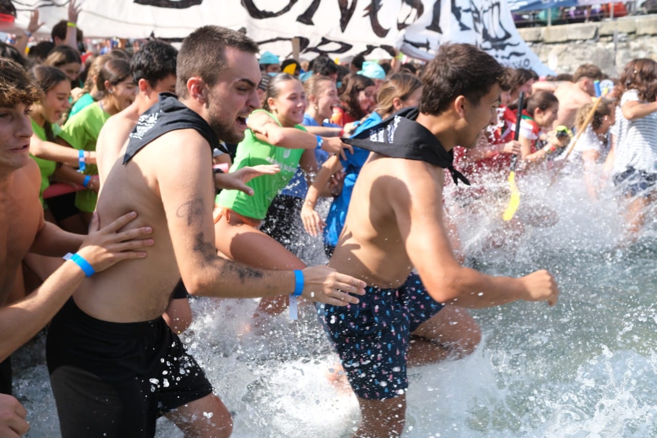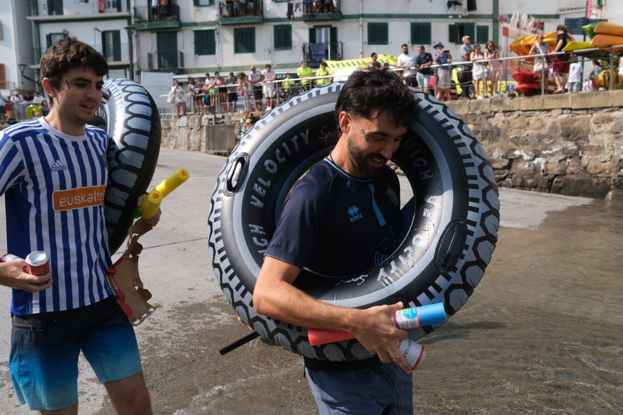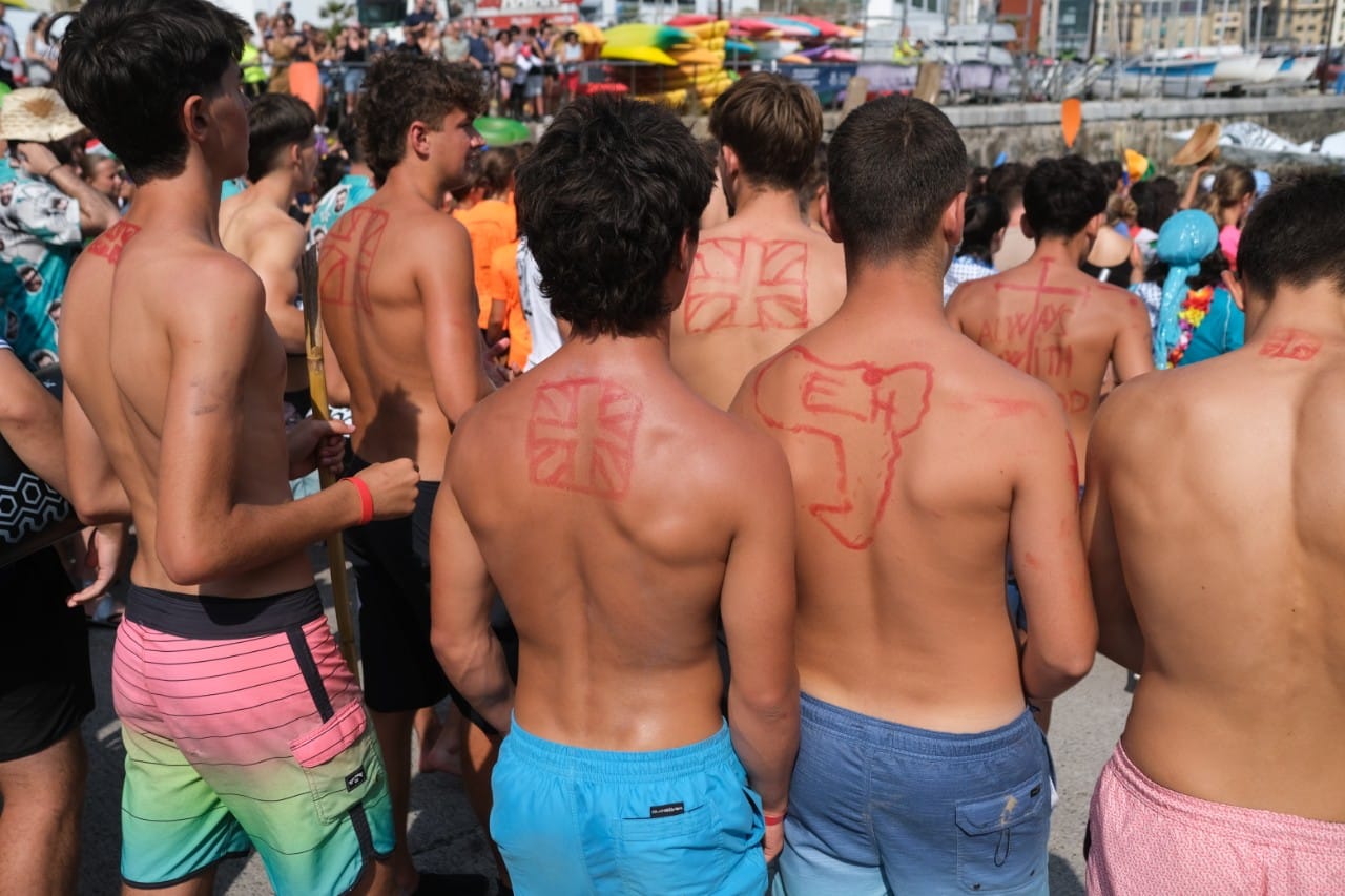 A las 17.00 horas los participantes han partido desde el Puerto rumbo a la bahía de La Concha, componiendo la estampa habitual de esta jornada: embarcaciones de todo tipo y creatividad, algunas con más pericia que otras, y un tono festivo constante. El buen humor no ha faltado, tampoco entre quienes han tenido que abandonar antes de llegar al destino.