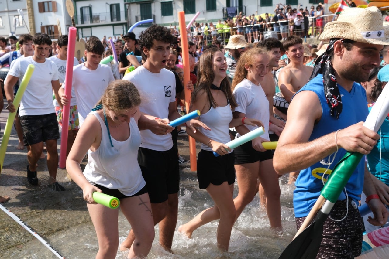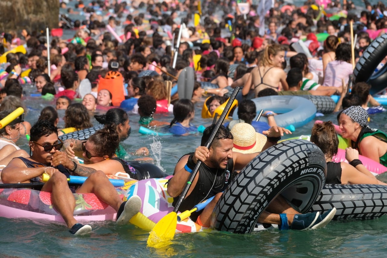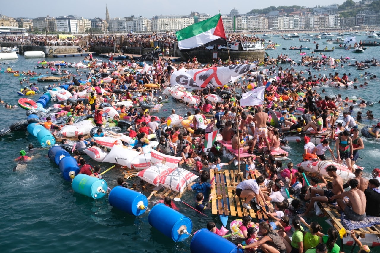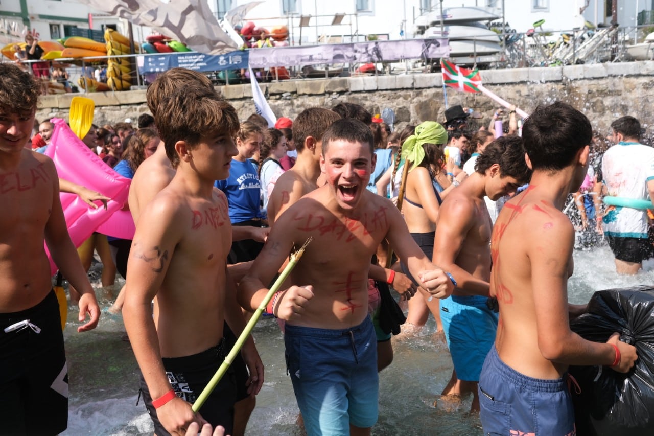 A las 17.00 horas los participantes han partido desde el Puerto rumbo a la bahía de La Concha, componiendo la estampa habitual de esta jornada: embarcaciones de todo tipo y creatividad, algunas con más pericia que otras, y un tono festivo constante. El buen humor no ha faltado, tampoco entre quienes han tenido que abandonar antes de llegar al destino.
