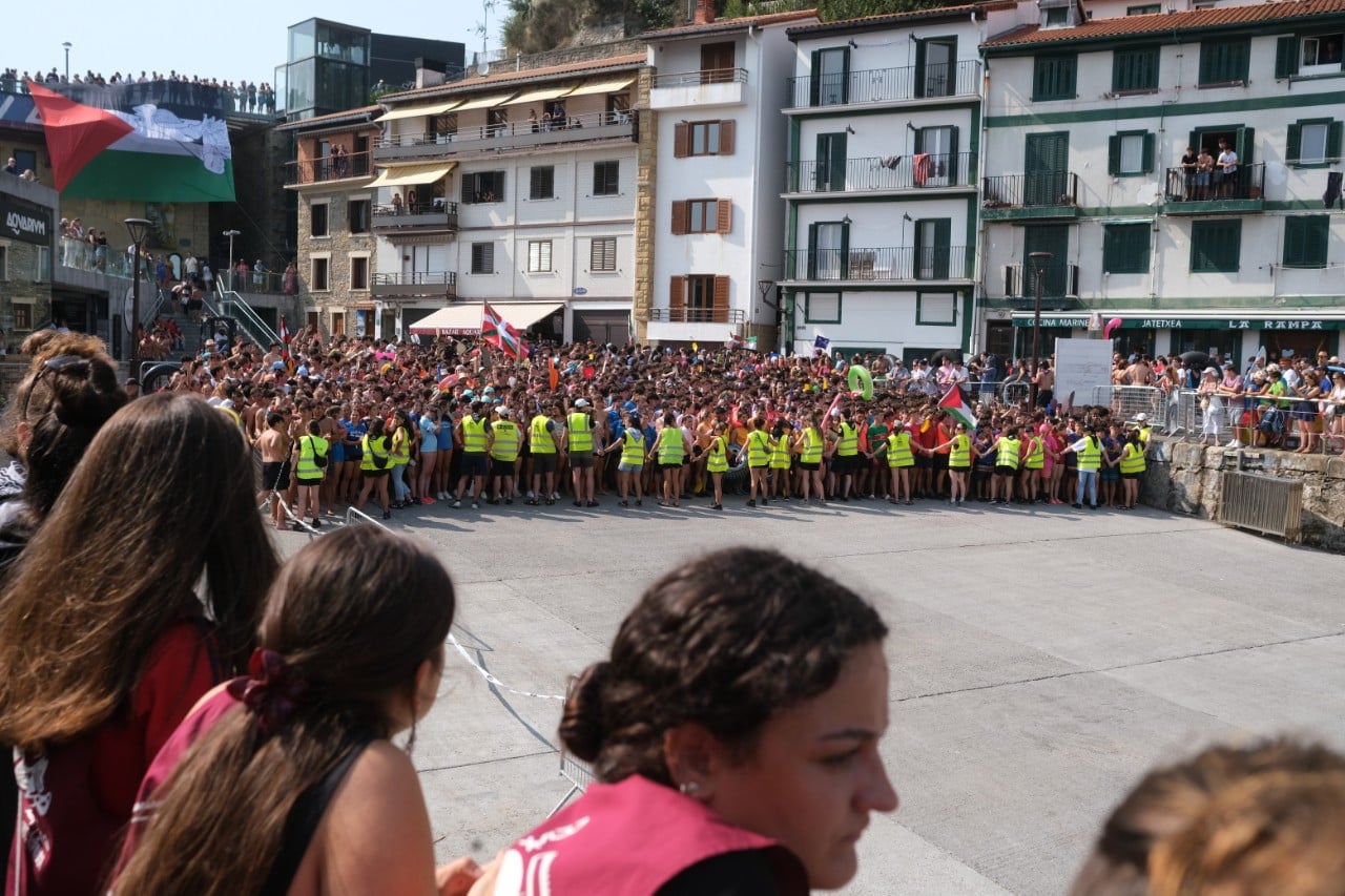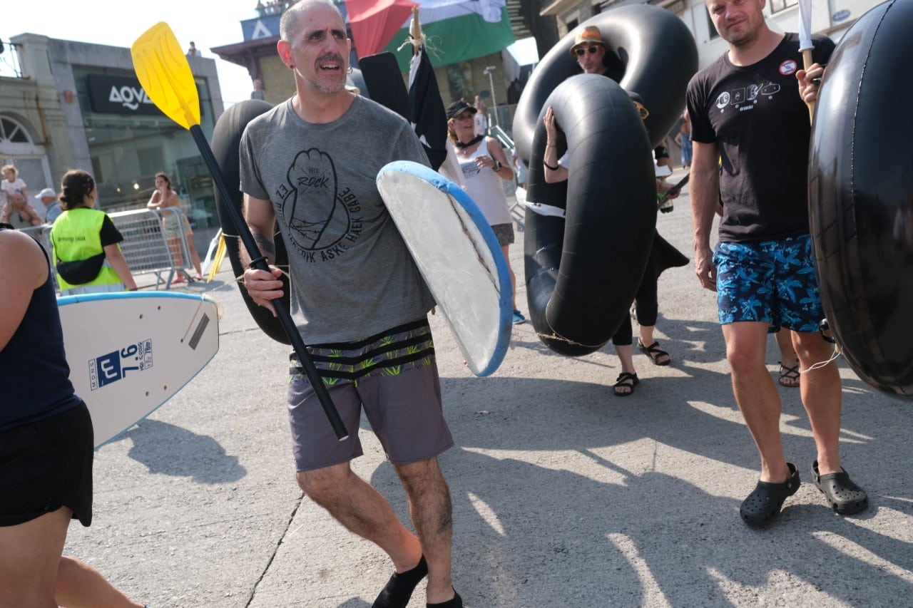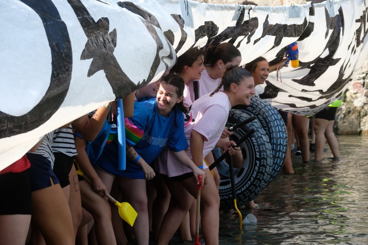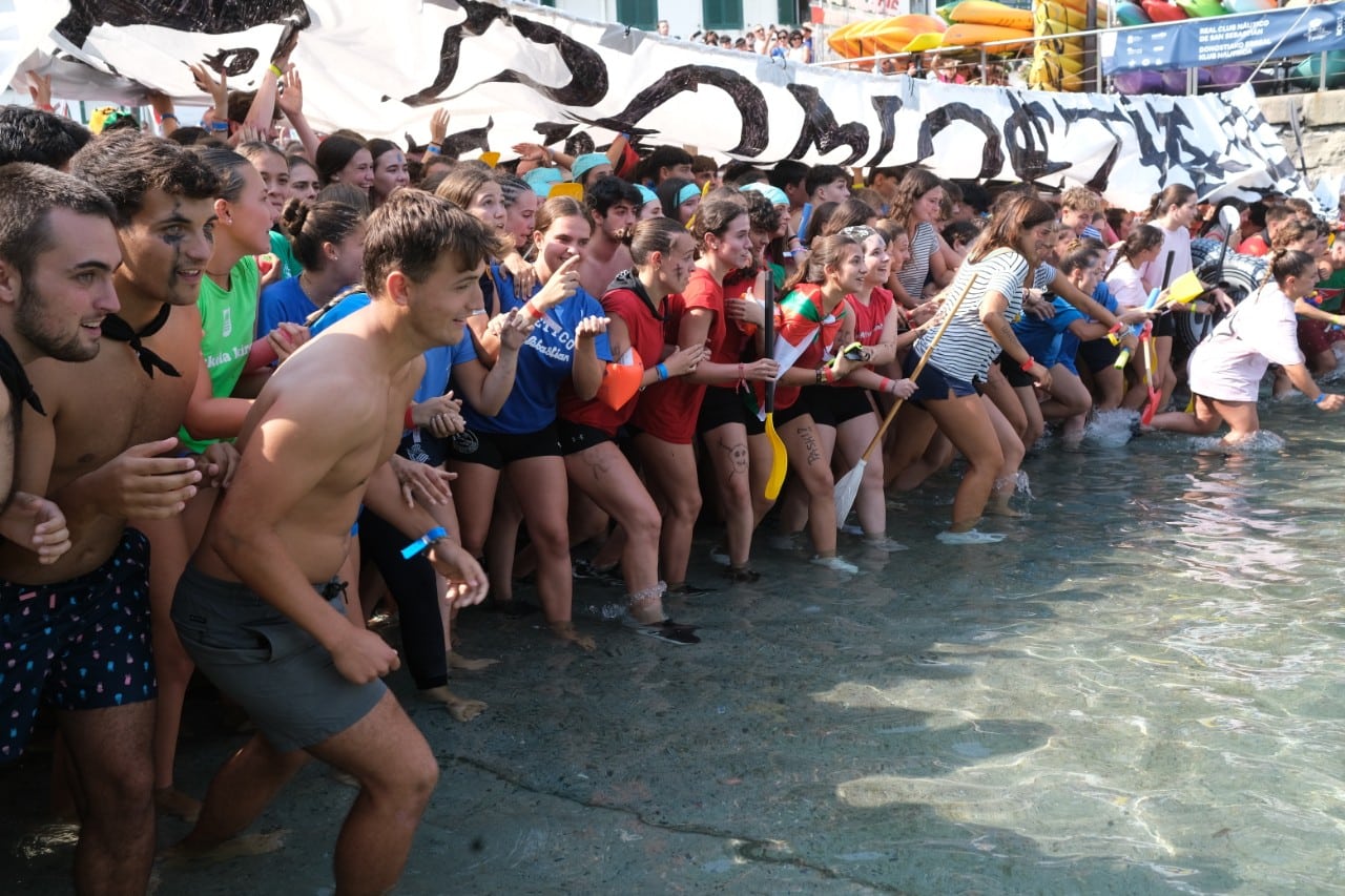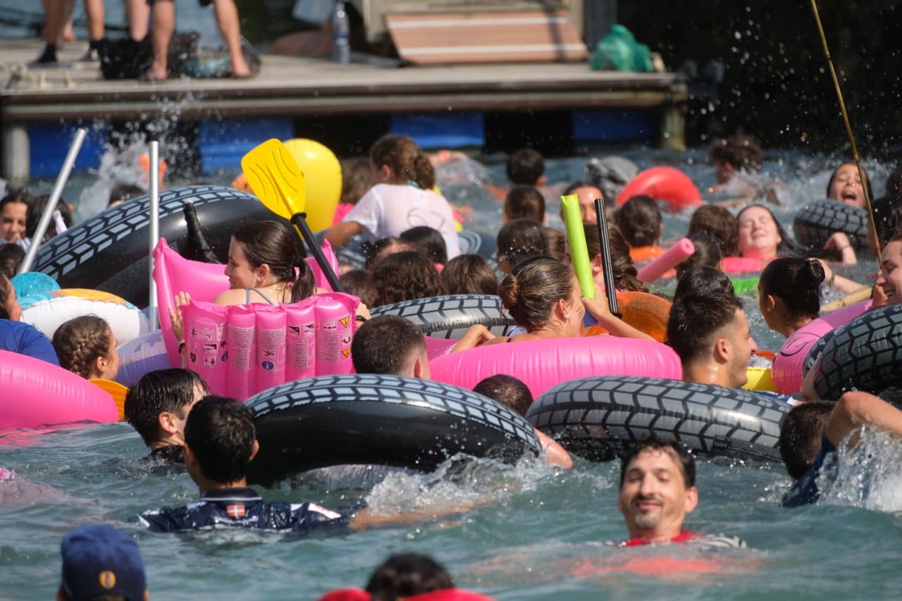 A las 17.00 horas los participantes han partido desde el Puerto rumbo a la bahía de La Concha, componiendo la estampa habitual de esta jornada: embarcaciones de todo tipo y creatividad, algunas con más pericia que otras, y un tono festivo constante. El buen humor no ha faltado, tampoco entre quienes han tenido que abandonar antes de llegar al destino.