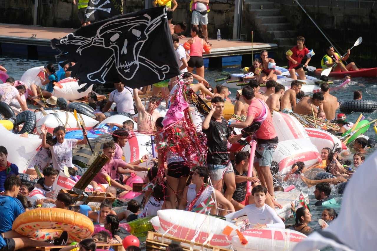 El Abordaje Pirata ha vuelto a llenar de público el Puerto y la bahía de La Concha en una de las citas más queridas de la Semana Grande. Con temperaturas altas y mucha afluencia, el ambiente se ha caldeado desde la mañana, cuando cuadrillas y grupos han terminado de montar sus balsas artesanales con materiales como palés, corcho y bidones.