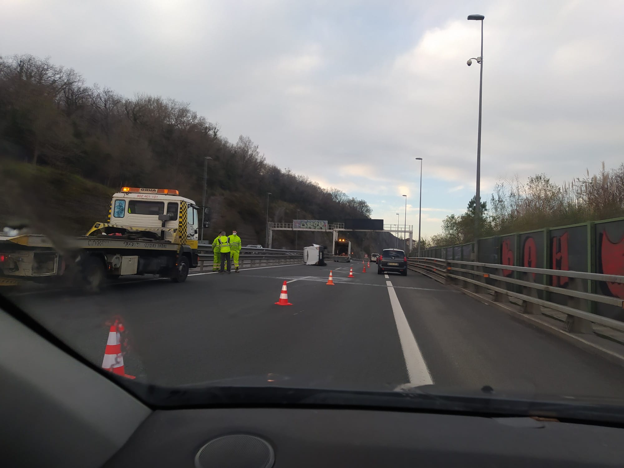 Una furgoneta Renault Kangoo y un coche Volkswagen Polo han colisionado a las 15.15 horas en la GI-41 (Donostia). Tras el choque la furgoneta ha volcado con el resultado de tres heridos que han sido trasladados al Hospital Donostia. Se han producido retenciones de medio kilómetro durante aproximadamente dos horas.