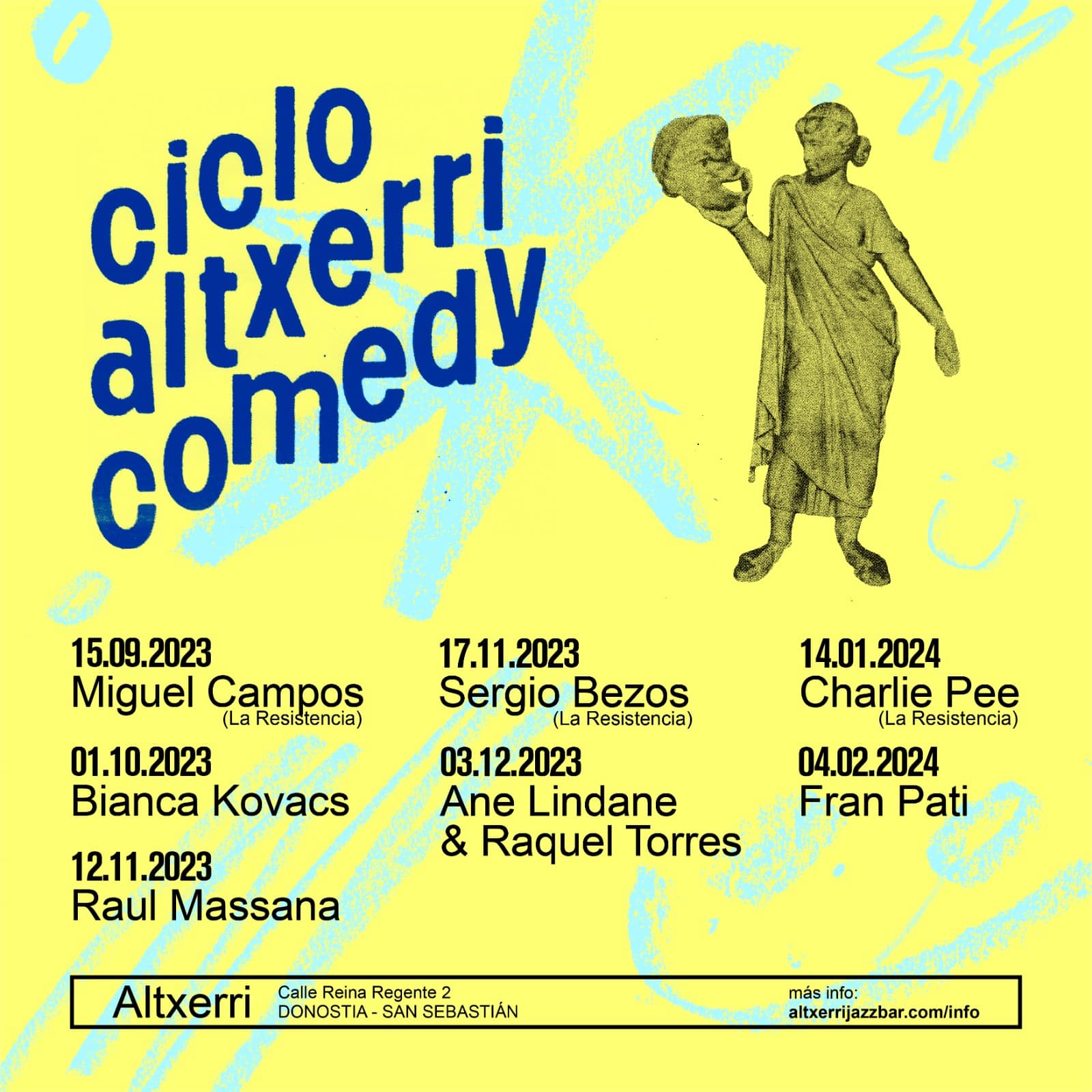 Altxerri Jazz&Bar ha lanzado un nuevo ciclo, Altxerri Comedy, que se estrenará este viernes. Dicho por sus responsables esta iniciativa «es necesaria y poco común por estos lares», y consiste en monólogos de humor con citas mensuales de septiembre a febrero.
