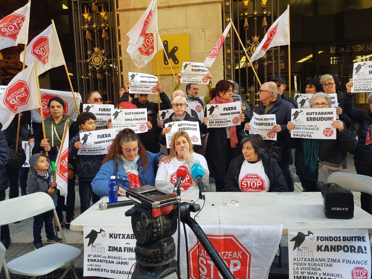 La «crisis económica» y los efectos de la «pandemia» impidieron que el negocio prosperara y ahora el fondo de inversión al que Kutxabank vendió la hipoteca ha solicitado la subasta del piso de los avalistas, según ha desvelado hoy Stop Desahucios durante en concentración que ha llevado a cabo ante la sede central de esta entidad bancaria.