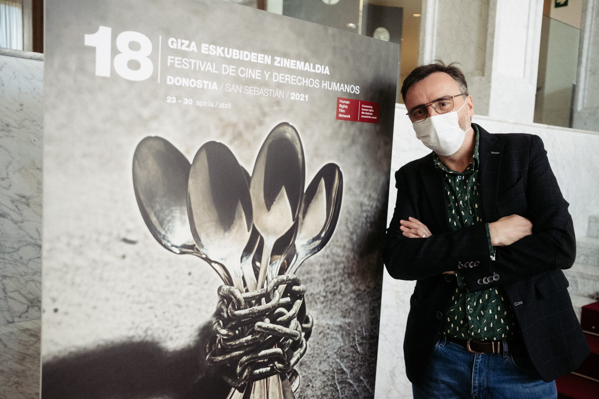 Hoy se ha presentado la programación del 18º Festival de Cine y Derechos Humanos en el Teatro Victoria Eugenia, que se celebrará del 23 al 30 de abril con la presencia de 36 películas (14 de ellas en sección oficial) y 5 exposiciones. A esta rueda de prensa han acudido el alcalde Eneko Goia, el director del certamen Josemi Beltrán, la representante de Amnistía Internacional Ainhoa Type y José Ángel Zuazua, representante de FiSahara en Donostia.