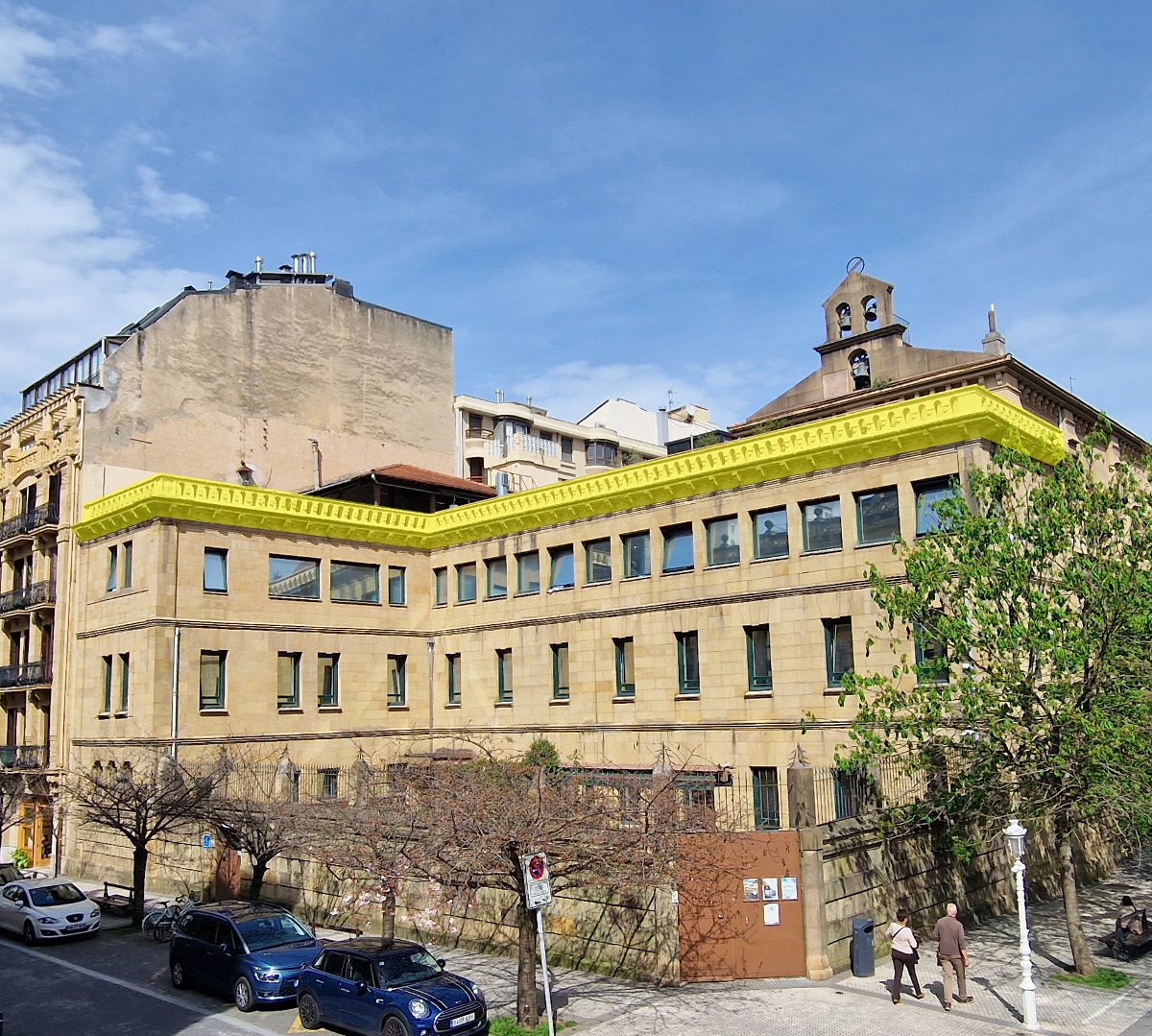 En un comunicado Áncora recuerda que la congregación de María Reparadora llegó en 1895 a San Sebastián con el apoyo de la reina María Cristina y tres años más tarde adquirió la mitad de la manzana nº 41 para construir un convento. «El arquitecto Ramón Cortázar proyectó un edificio de gran sobriedad. La fachada principal se orienta hacia la calle Easo y tiene el aspecto de una casa de vecindad con citas neomedievales en las chambranas o alfices que enmarcan los vanos, y los motivos cruciformes de su rejería».