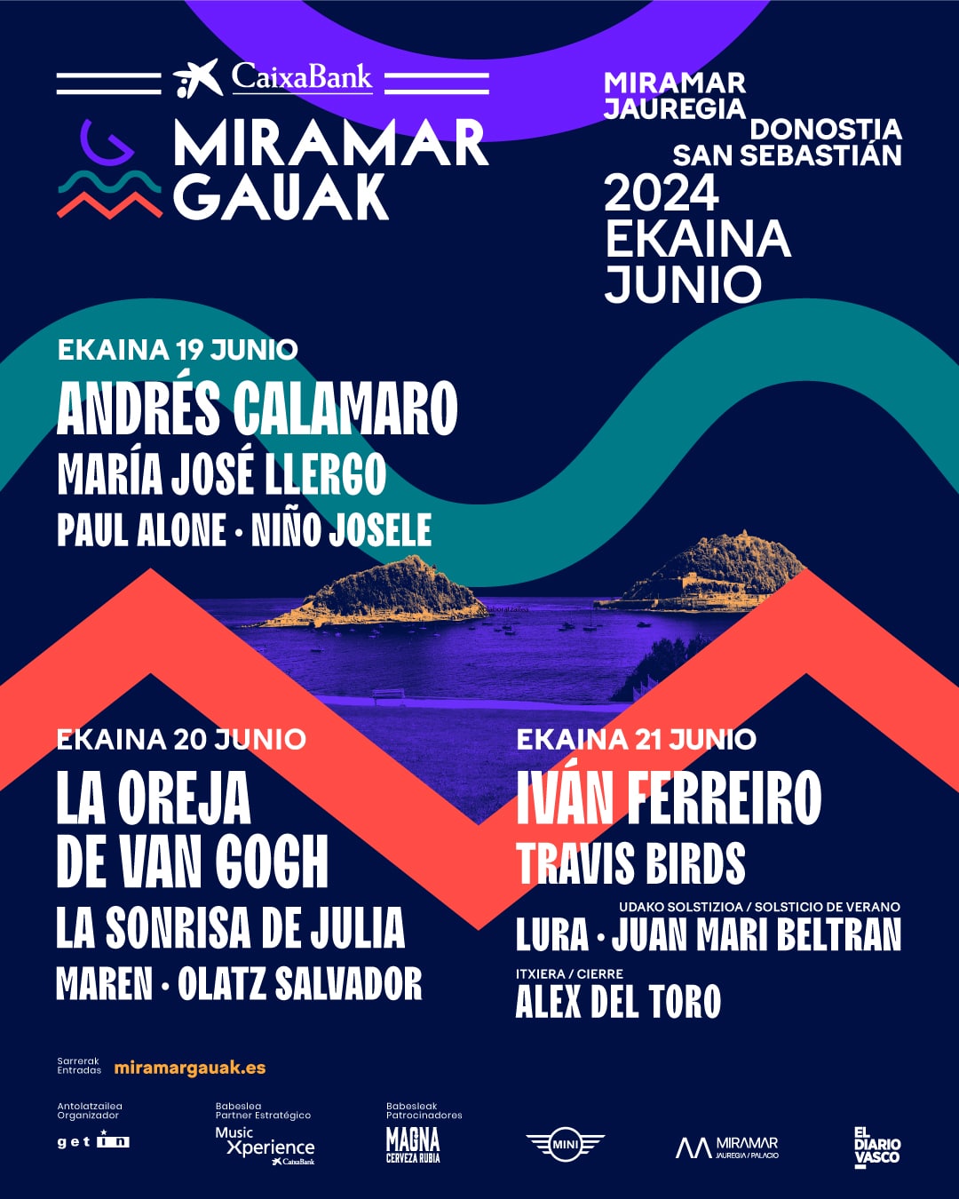 La iniciativa, impulsada por Get In con el apoyo de CaixaBank MusicXperience, contará en esta primera edición, entre otros, con tres artistas de renombre en el panorama musical: Andrés Calamaro, La Oreja de Van Gogh e Iván Ferreiro. Ellos encabezarán el cartel de este festival que tendrá lugar los días 19, 20 y 21 de junio, respectivamente, en uno de los emplazamientos más icónicos de Donostia: el Palacio Miramar.