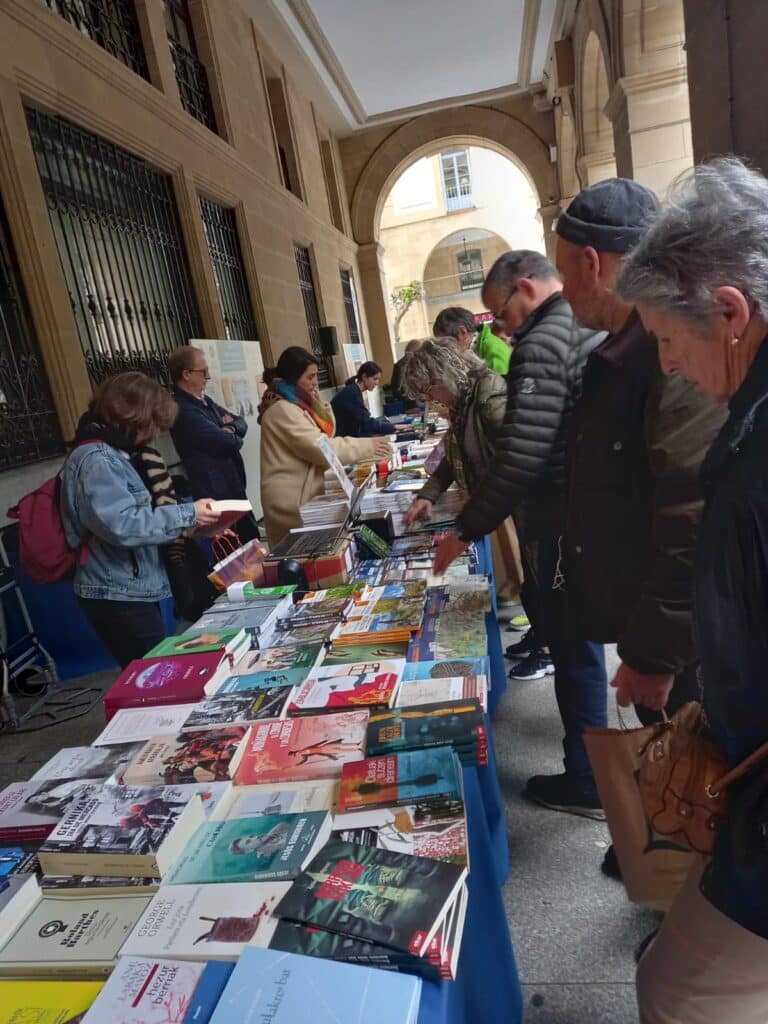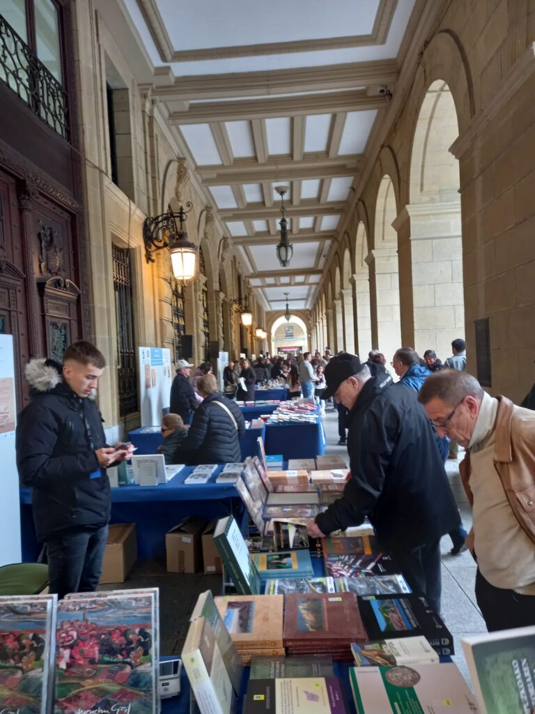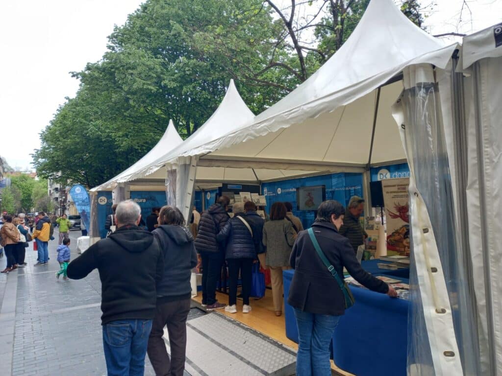 Como todos los años hay descuentos del 10% y además con las compras se pueden conseguir libros de regalo y pintxos. La invitada de la jornada es Karmele Jaio, que será entrevista a las 19 horas por Xabier Mendiguren.