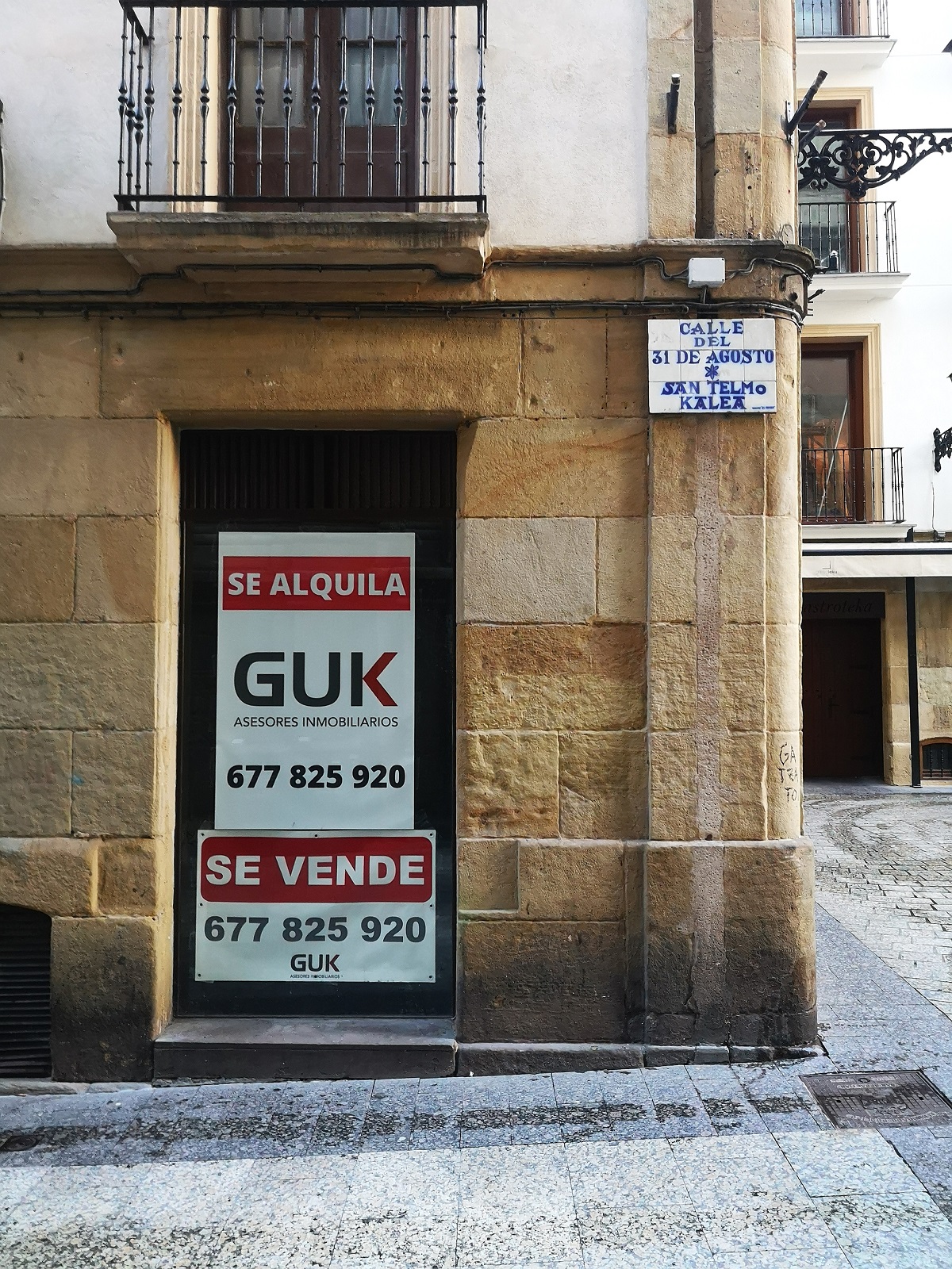 Carteles de se alquila. Un letrero que dice en letras mayúsculas: se vende. Llamad a X asesor inmobiliario. La hostelería no es el virus, la responsabilidad es de todos. Cerrado. Se traspasa. Persianas bajadas. Escaparates vacíos. De una punta de Donostia a otra, sin distinción entre barrios ricos y populares, el coronavirus se está cebando con el comercio local y la hostelería, que ven cómo sus negocios se tambalean o directamente desaparecen.