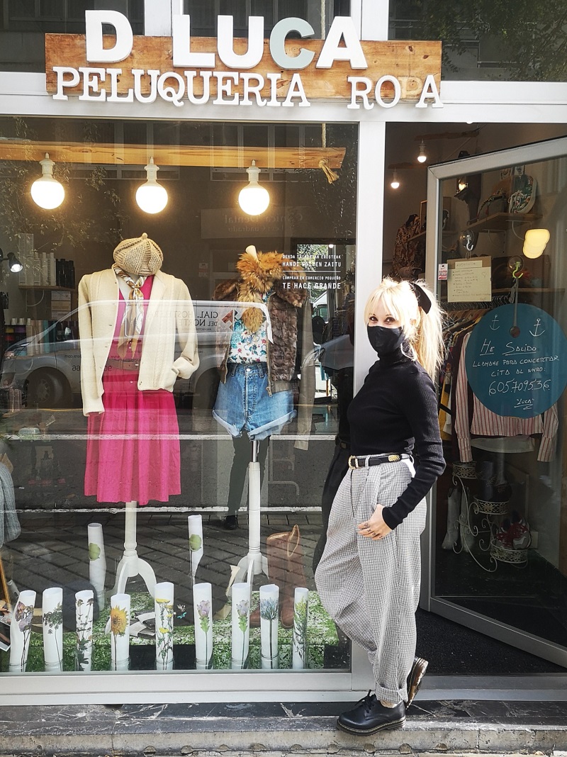 “Si cierra la hostelería la gente no quiere comprar ropa ni complementos. Esto es un a ver qué pasa todos los días”, explica por su parte Ane Oliveira (@nollevotacones en su cuenta de Instagram) en la tienda Canesú de Reyes Católicos. ¿No has pensado en arrojar la toalla de una vez por todas y dedicarte a otra cosa? “No. Tengo toda la ilusión del mundo. Aunque va a ser complicado, esto no va a poder con nosotras”.