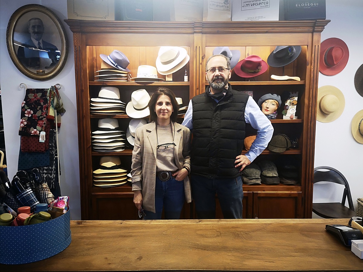 “A la Parte Vieja la hostelería le da vida y al estar los bares cerrados viene muy poquita gente. Nos deja hechos polvo”, cuenta por su parte Pepa Martínez de la histórica sombrerería Leclercq, que en los últimos tiempos abrió una segunda sede en la calle Fermín Calbetón. “Al turista ya le damos por perdido, pero a lo que a nosotros nos salva es la especialización”, añade acompañada de su pareja José Mari, que pertenece a la cuarta generación de sombrereros Leclercq, en la esquina de la calle Narrika con Iñigo en su emplazamiento original desde 1932.
