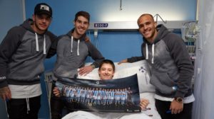 No es fácil vivir estas fechas ingresado en el hospital y menos aún siendo un niño. Por tal motivo la visita de esta tarde de Aritz Elustondo, Theo Hernández y Sandro Ramírez ha resultado una auténtica inyección de moral para estos txikis que se encuentran ingresados en el Hospital Donostia. Los futbolistas han llegado con muchos regalos pero, sobre todo, han contagiado a los pequeños con el mayor de los ánimos para que se curen y se pongan buenos cuanto antes.