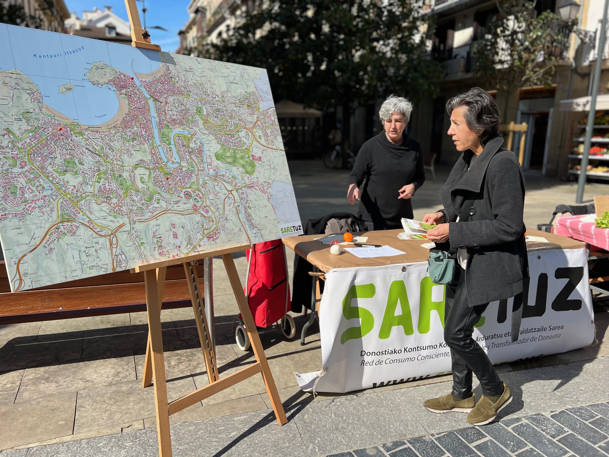 El Ayuntamiento de San Sebastián y Fundación Cristina Enea, en colaboración con Saretuz, la Red de Consumo Responsable de San Sebastián, han puesto en marcha la iniciativa ON EKIN, coincidiendo con el Día del Consumo Responsable, que se celebra el 15 de marzo. Por este motivo, esta mañana se ha colocado un puesto de consulta en la calle San Juan, junto al mercado de la Bretxa, para dar toda la información a la ciudadanía.