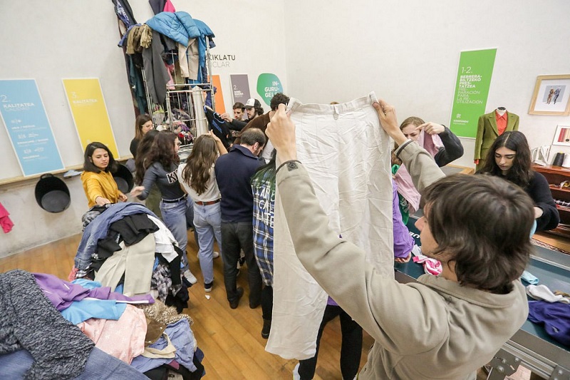 En los talleres que se realizan en el espacio ‘Ingurugela’ de Emaús Fundación Social se ahonda en el consumo desmedido de la moda textil y sus consecuencias (contaminación, consumo de recursos naturales, condiciones salariales y laborales precarias, impacto en los países pobres y generación de residuos) y se da a conocer cómo y dónde se recoge toda esa ropa.