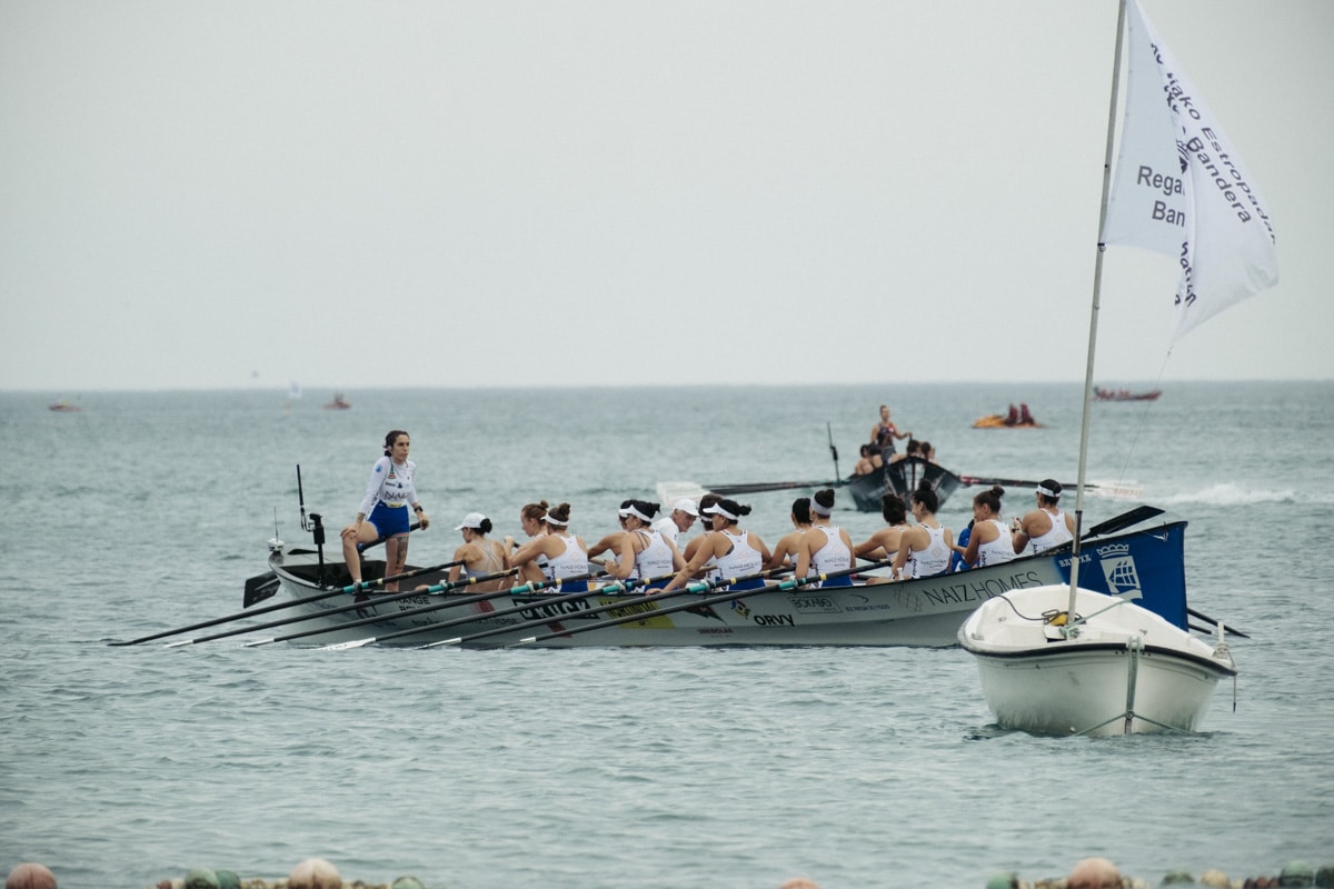Orio tuvo que bogar casi en solitario, como una contrarreloj, ya que superaba claramente a Zumaia, su rival más competente, y las distancias eran mucho más acusadas con Hibaika y Hondarribia, que ya se había llevado el premio clasificándose para la mejor bandera del verano.