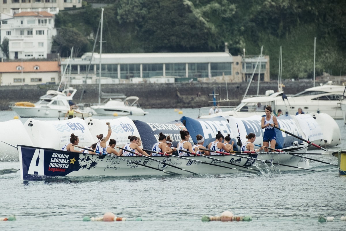 Arraun Lagunak se llevó ambos retos con una autoridad que dejó sin aliento desde el inicio a sus rivales, a las que dominaba con claridad tras un gran largo de ida a la llegada a la ciaboga y que incrementó su ventaja tras el giro exterior en un tramo de vuelta en el que fue metiendo segundos a todas las adversarias.