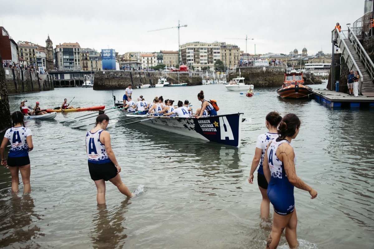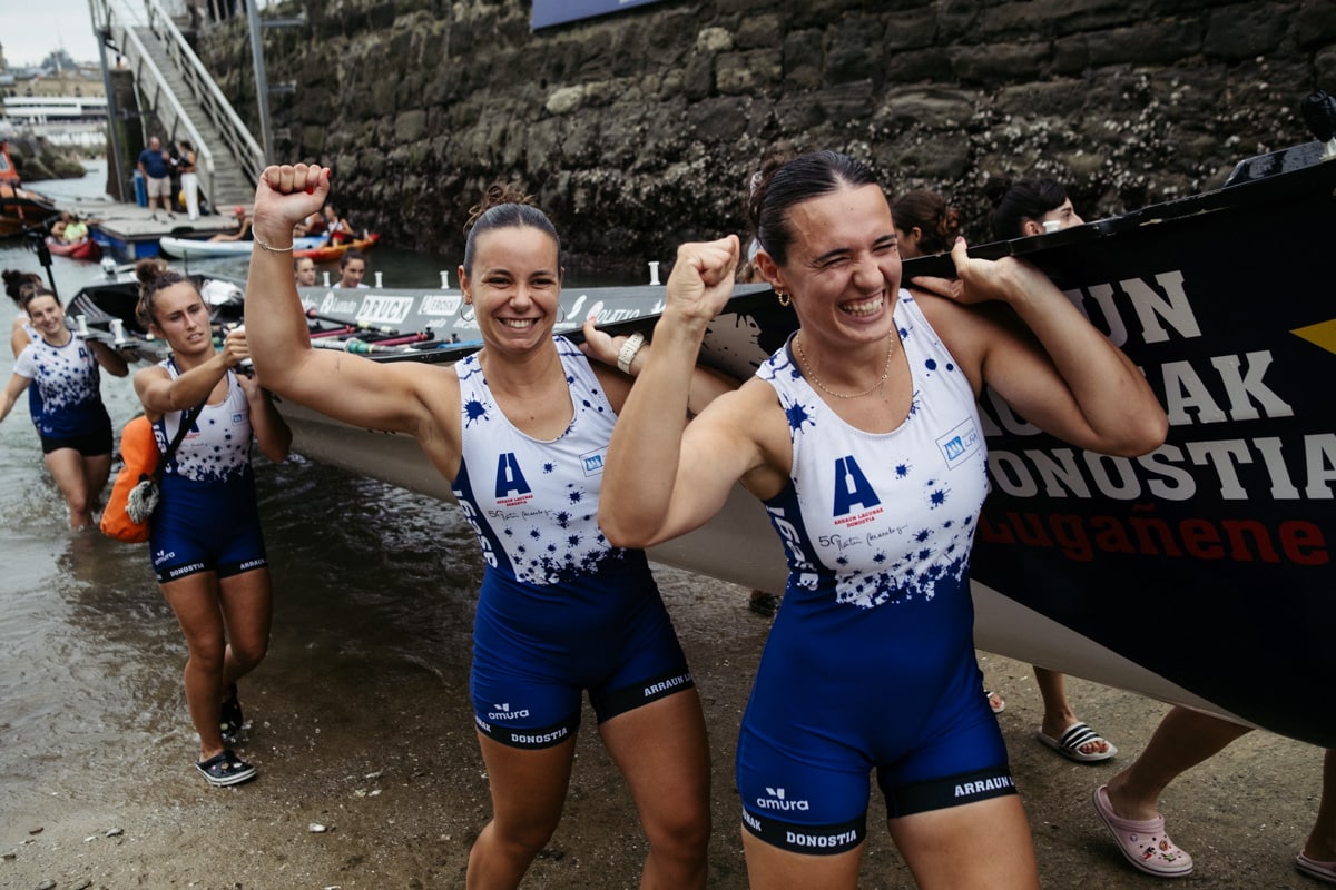 Además, estaba el otro desafío entre los dos botes de San Sebastián, el proyecto que representa Donostiarra y el singular, ajeno a la selección de remeras de la capital, que es Arraun Lagunak, una pugna que siempre despierta pasiones entre los aficionados.