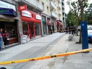 Tras recibir la denuncia de los hechos los agentes han acudido con un coche de la Ertzaintza y otro de la Guardia Municipal y han acordonado el área afectada (desde el portal hasta la panadería incluyendo ambos locales) para evitar que los viandantes resultaran heridos con los lanzamientos.