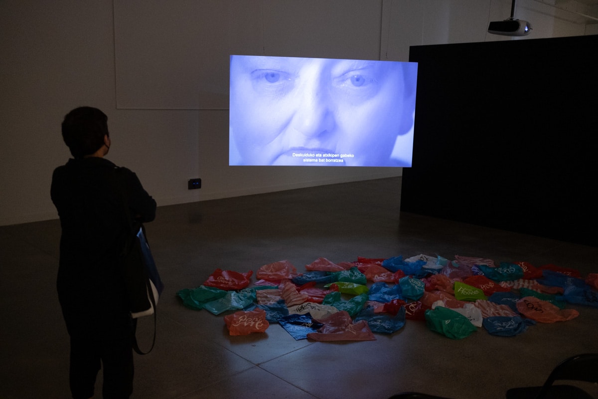 La directora cultural de Tabakalera, Clara Montero, junto a los comisarios de ambas muestras, el alemán Florian Wüst y el catalán afincado en Suecia Martí Manen, han presentado este martes las dos nuevas propuestas, en un acto al que han asistido varios de los artistas participantes.