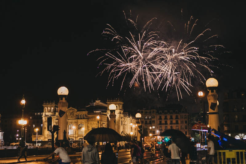 La jornada presagiaba tormenta y pese a que los donostiarras miraban para otro lado los truenos se dejaron oír minutos antes de los fuegos artificiales y de hecho acompañaron a la pirotecnia eslovena Hamex en su intento por hacerse con el premio del certamen internacional. Los donostiarras buscaron refugio, y cuando muchos se preguntaban ya si los rayos y los truenos aguarían también el concierto de Sagües, cesó el ruido. También descansó la lluvia. La banda bilbaína Zea Mays puso entonces todo su talento y fuerza para levantar el ánimo caído con el chaparrón, pero tristemente no fue suficiente para que muchos que ya habían decidido volver a casa se animaran a acudir a Sagües.