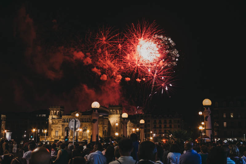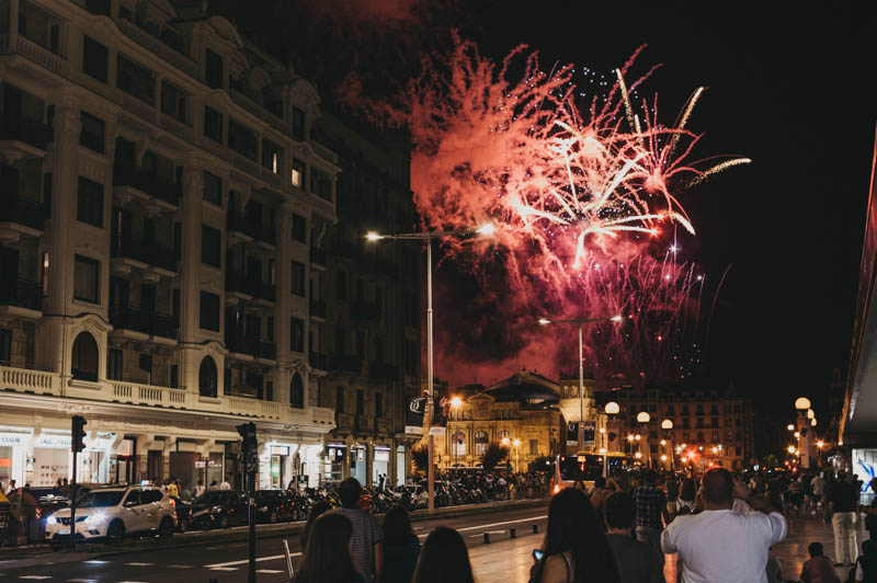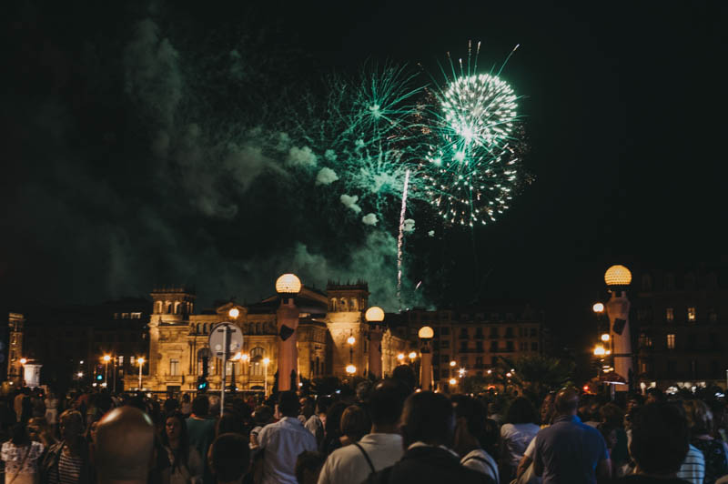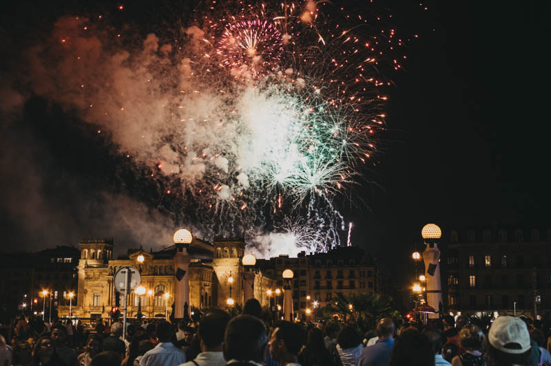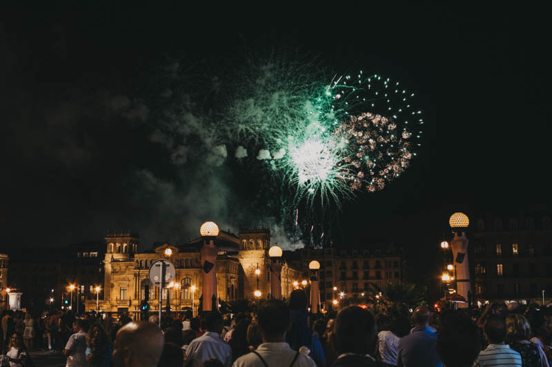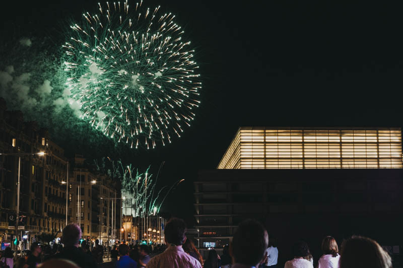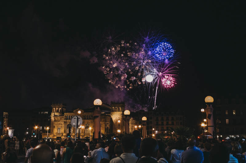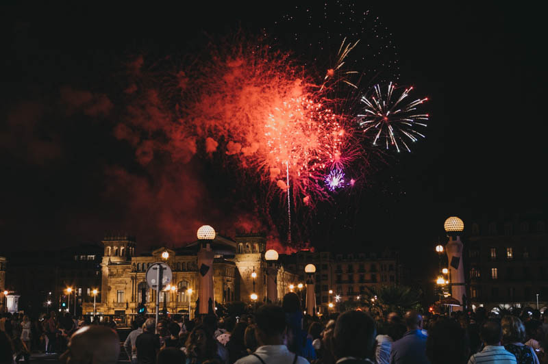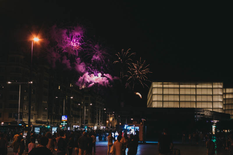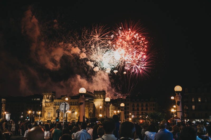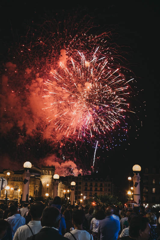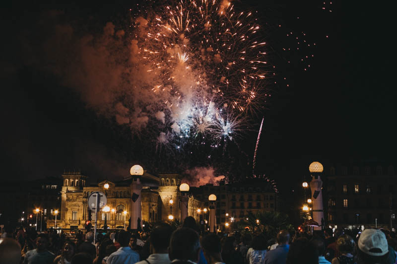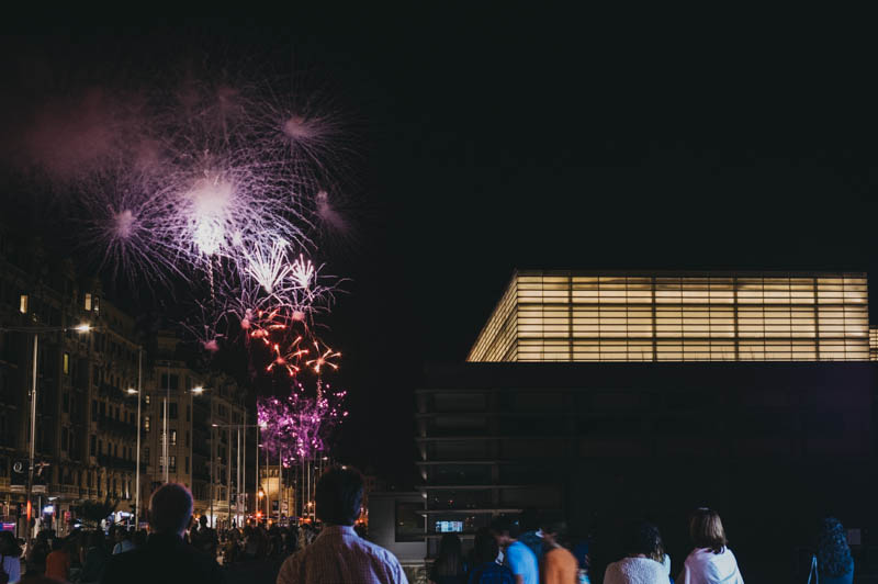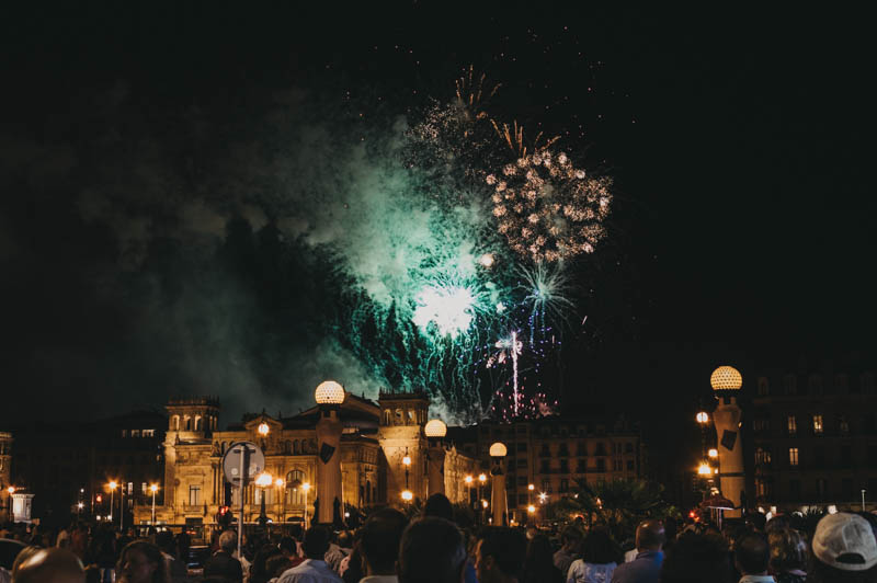 Ya por la noche los Fuegos Artificiales tomaron el cielo con miles de donostiarras bien situados para no perdérselos. Era el turno de la pirotecnia de Granada Esteban Martín que se encargó de abrir el concurso internacional.