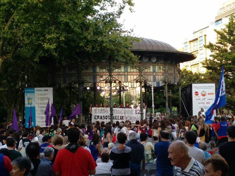 Donostiako Feministak se ha venido manifestando tras cada hecho y en algún caso con polémica. Ayer detuvieron el concierto del Quiosco del Boulevard con motivo de la protesta.