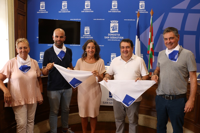 Un año más los pañuelos de la Semana Grande, diseño de Iñigo Garvi, ganador del concurso convocado al efecto desde el cluster de la Moda de San Sebastián, se repartirán en los comercios asociados a Zaharrean y Centro Erdi, en la oficina de Donostia Turismo y, gracias a la colaboración del Departamento foral de Movilidad y Ordenación del Territorio, en la estación de autobuses.