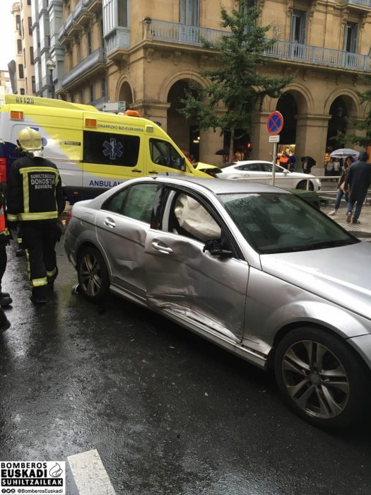 El choque entre una ambulancia y un coche esta mañana en el centro de Donostia, entre Urbieta y San Martín, se