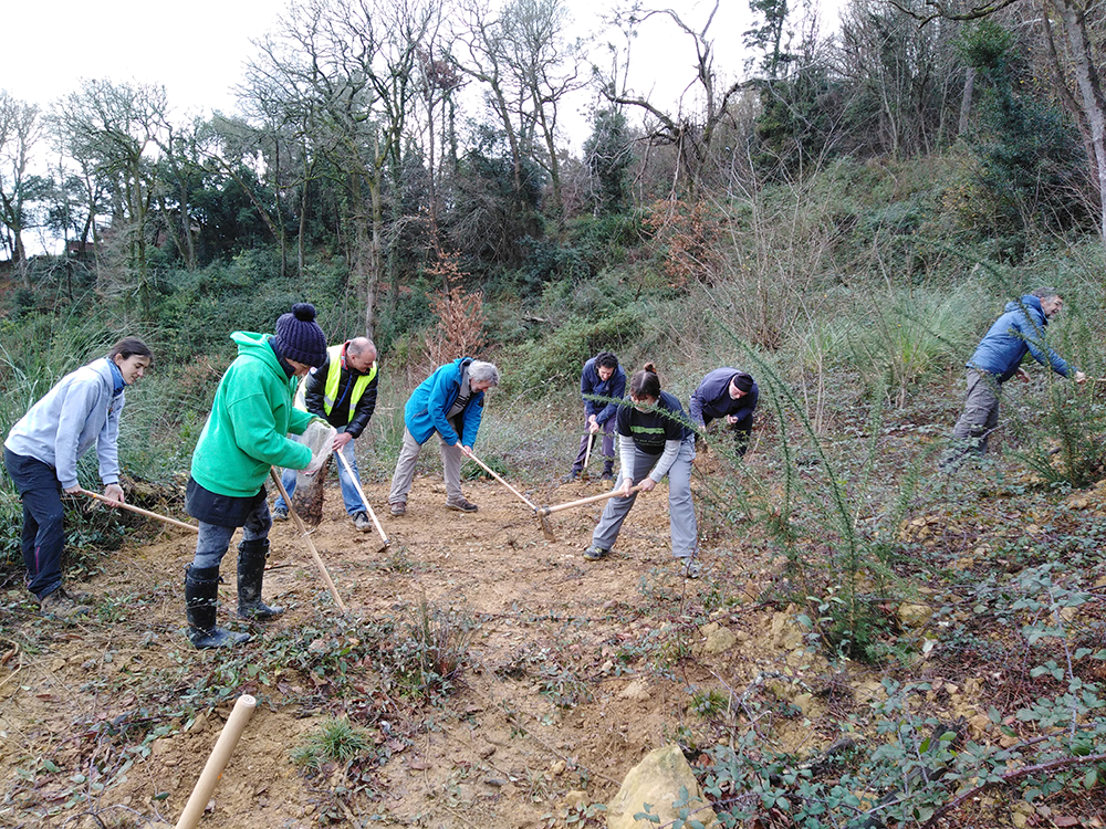Un grupo de voluntarios de las asociaciones Eguzki y Haritzalde han sembrado en Lourdes Txiki cientos de semillas de árboles