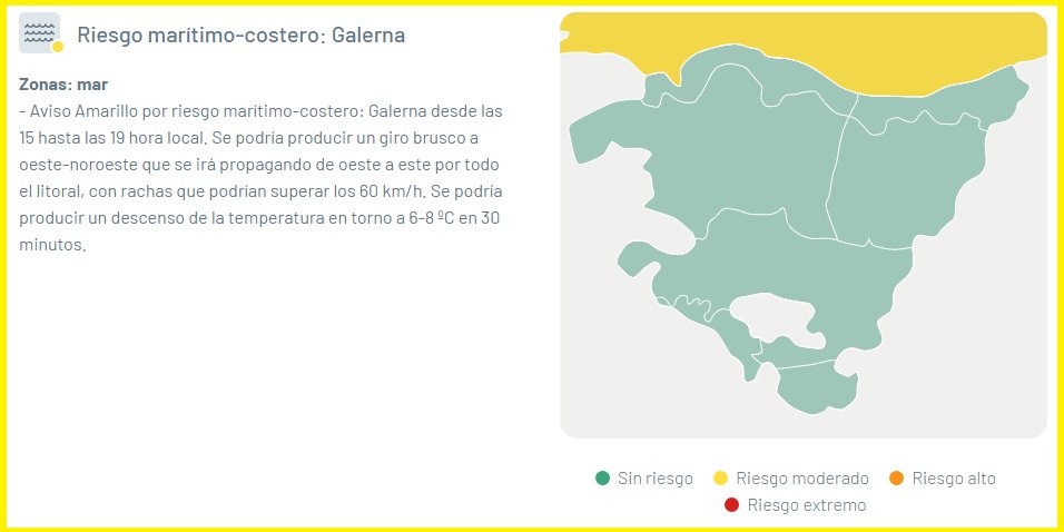 Euskalmet ha advertido de un Aviso Amarillo desde las 17 horas hasta las 20 a causa de una probable galerna.
