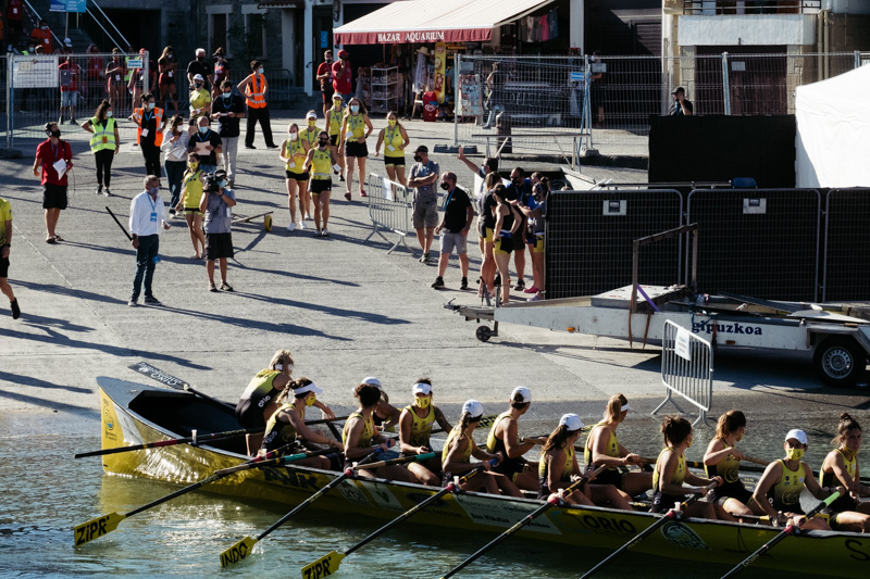 Esta tarde se ha celebrado la regata clasificatoria para determinar los 7 clubes femeninos que junto con la tripulación donostiarra de Kaiarriba competirán por la Bandera de la Concha en las dos regatas finales que se celebrarán los domingos 6 y 13 de septiembre. En la modalidad femenina disputada esta tarde el mejor tiempo ha sido para Orio (11:08,82) seguida de una fuerte Tolosaldea.