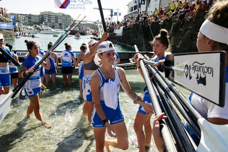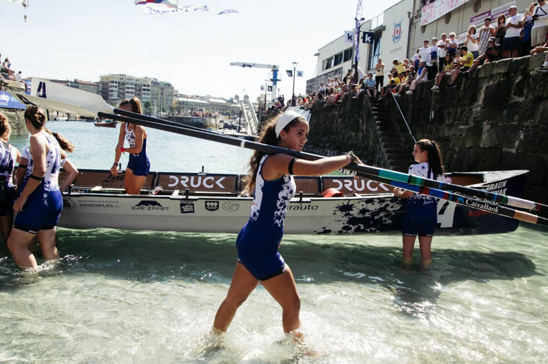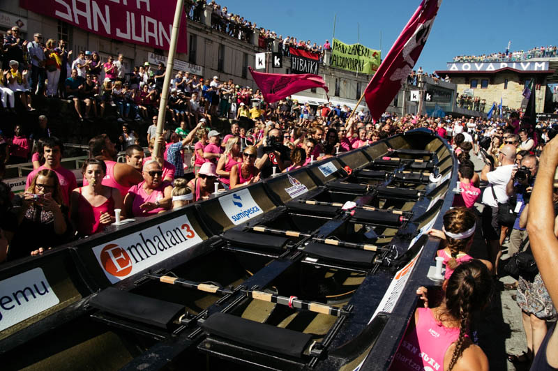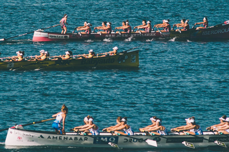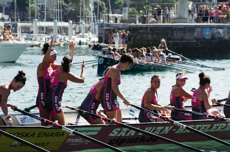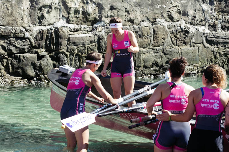 En las regatas femeninas competirán San Juan, Riveira, Orio y Arraun. Y concretamente San Juan partirá con seis segundos de ventaja sobre Riveira, siete sobre Orio y trece sobre Arraun.