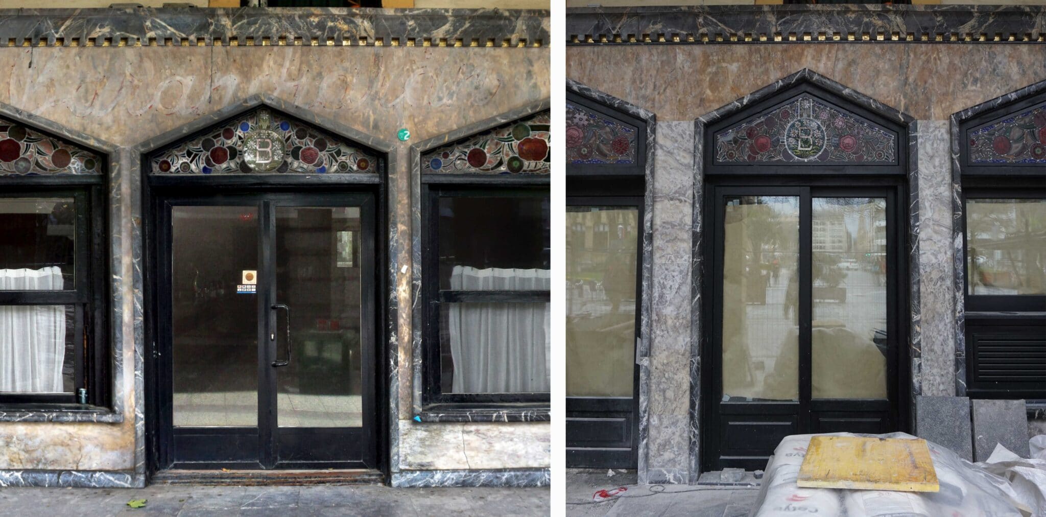 Recuerda Áncora que los propietarios del local contrataron una empresa especializada en la restauración de mármoles y en agosto presentaron el proyecto de restitución de la envolvente, redactado por los arquitectos Fernando Gárate y Unai Aldama (FIARK). «La propuesta obtuvo el visto bueno al garantizar la conservación de las seis vidrieras históricas y replicar los paños exteriores con los mismos materiales y dimensiones originales, manteniendo intacta su imagen«, dice Áncora.