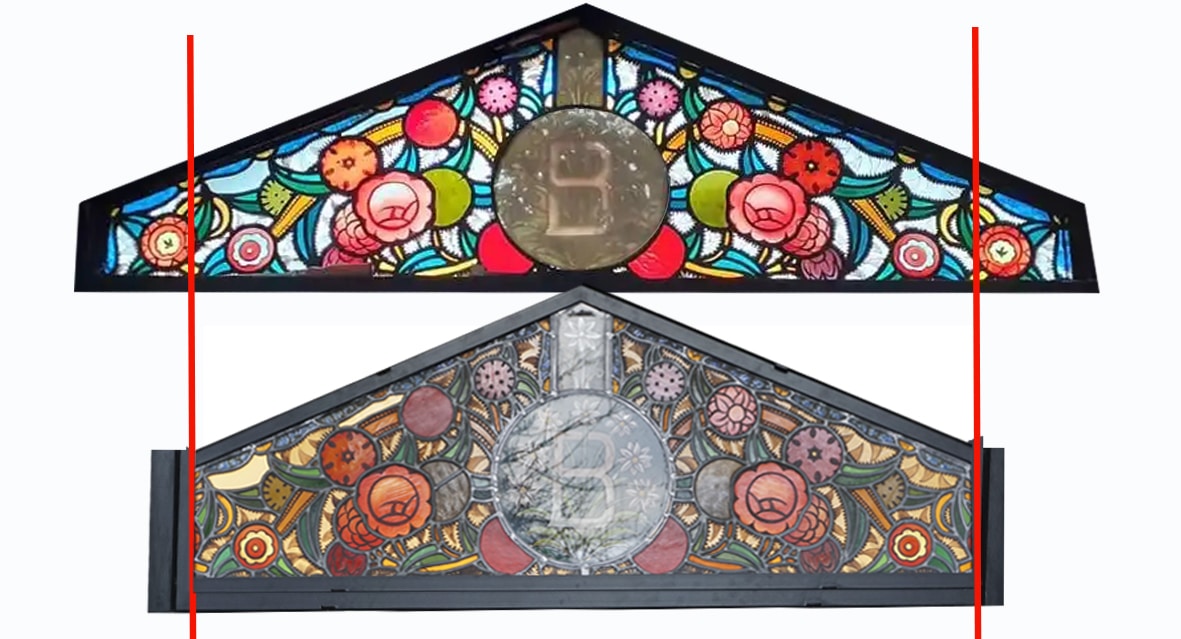 Sin embargo la asociación denuncia que «la sorpresa» ha surgido al detectar que «las nuevas fachadas no corresponden al proyecto aprobado por Diputación». «Las alteraciones son perceptibles a simple vista si comparamos las fotografías previas a la intervención con el estado actual. Se han modificado arbitrariamente las medidas de los huecos, desafiando cualquier regla compositiva y estética. Las ventanas son ahora más pequeñas, y el ensanchamiento de las jambas resulta muy evidente. Las vidrieras de Mauméjean ya no encajan en los marcos, optándose por recortar a la brava todos sus laterales o extremos».