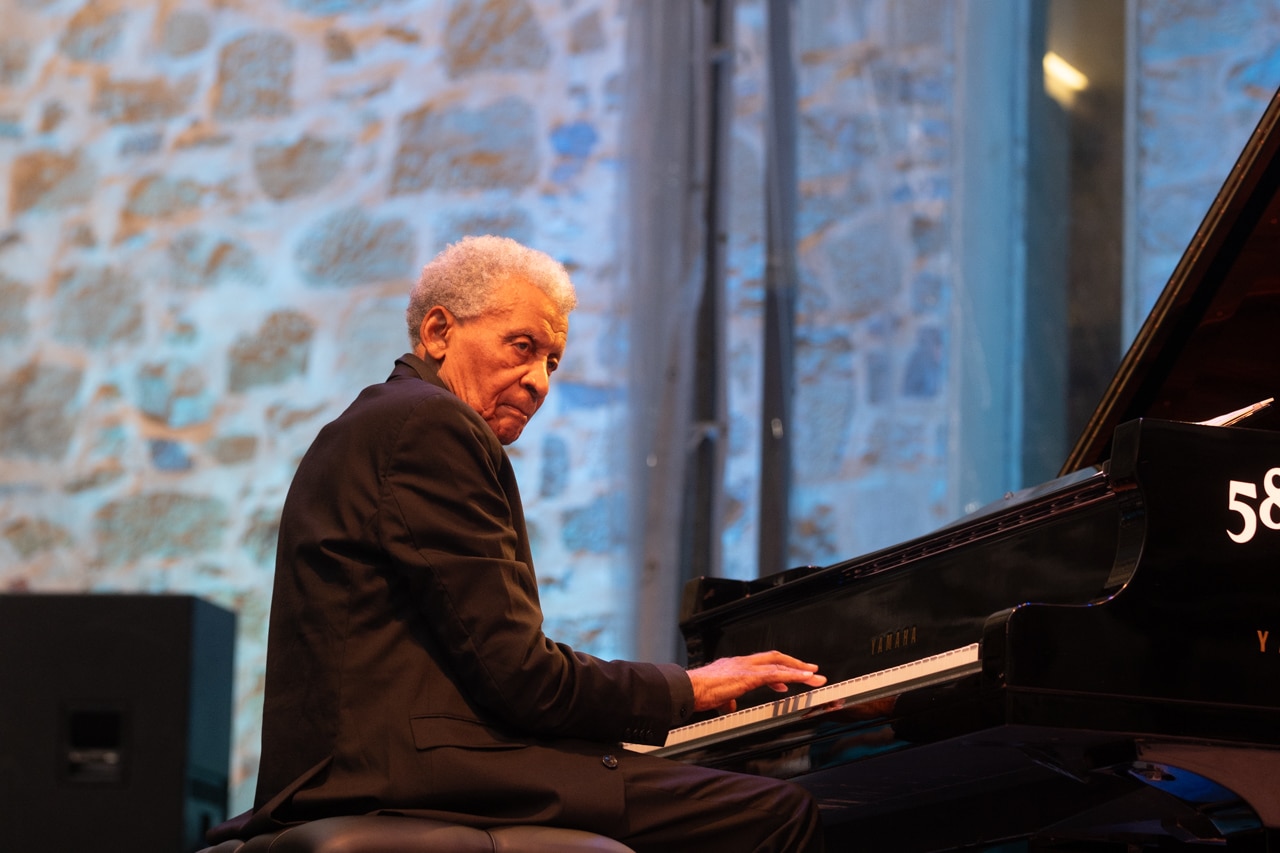 En su sexta visita al Jazzaldia, Abdullah Ibrahim acude al escenario de la plaza de la parte vieja donostiarra con un trío. La sutileza de su música en la que resuenan ecos de raíz tradicional sudafricana y de jazz, consigue una emulsión musical que raya entre lo religioso y lo moderno.