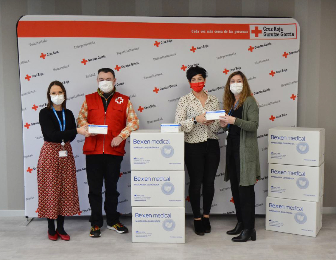 La empresa gipuzkoana Bexen medical, la mayor fabricante de mascarillas a nivel nacional, hizo entrega a Cruz Roja Gipuzkoa de 200.000 mascarillas en un acto celebrado en las nuevas instalaciones de la entidad en San Sebastián. Al acto simbólico de entrega acudieron Sonia Archeli, Presidenta Cruz Roja Gipuzkoa; Asensio Sarasua, Vicepresidente Cruz Roja en Andoain, así como Lucía Garay y Susana Otegui de Bexen medical.